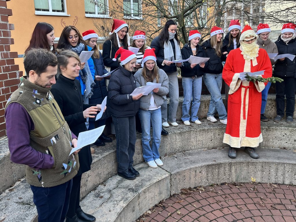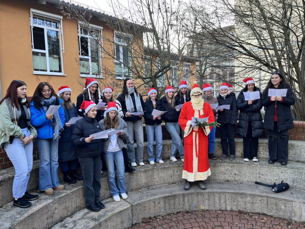 Alle Jahre wieder besucht der Weihnachtsmann das RWG und bringt seine singenden Wichtel mit. So auch dieses Jahr. Die Wichtel haben sich mit hervorragenden Leistungen im Volleyballkurs von Herrn Thiele für den Auftritt qualifiziert und auch einige stimmstarke Kolleg*innen ließen weihnachtliche Töne erklingen. Der Weihnachtsmann und das gesamte RWG Kollegium wünscht eine frohe Weihnacht, besinnliche Feiertage und einen guten Rutsch in ein glückliches Jahr 2024.