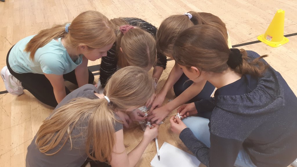 Bebaut mit Hindernissen verschiedenster Art, mussten zwei Teams den Parcours möglichst schnell überwinden, um ein Puzzleteil zu erkämpfen. Sobald ein Team alle Teilchen hatte, konnten sich die Gruppen daran machen, das Puzzle zusammenzusetzen und die Aufgaben darauf zu lösen.