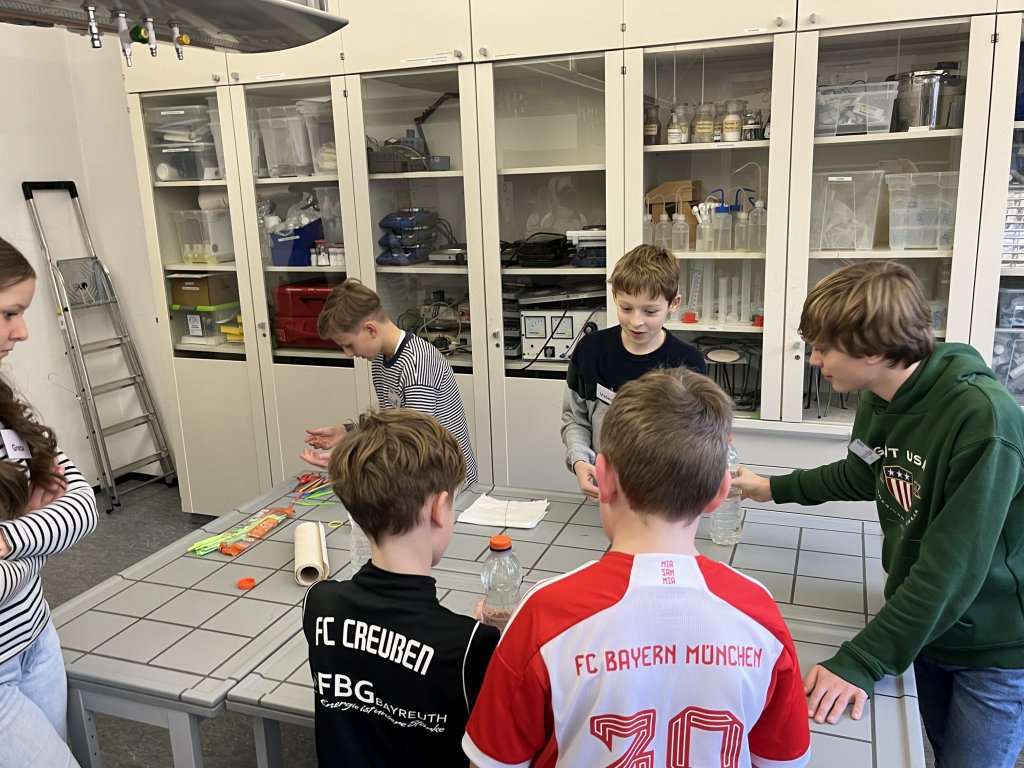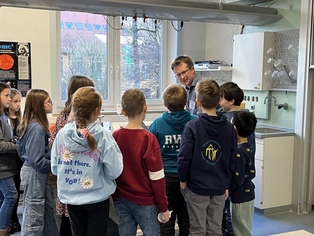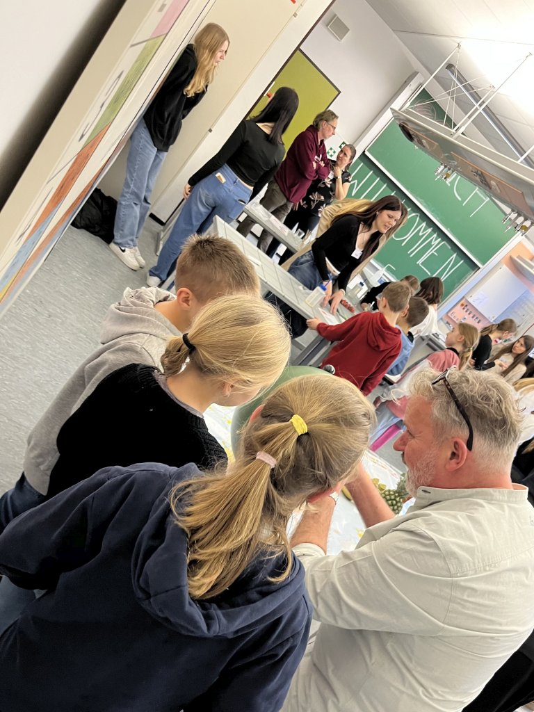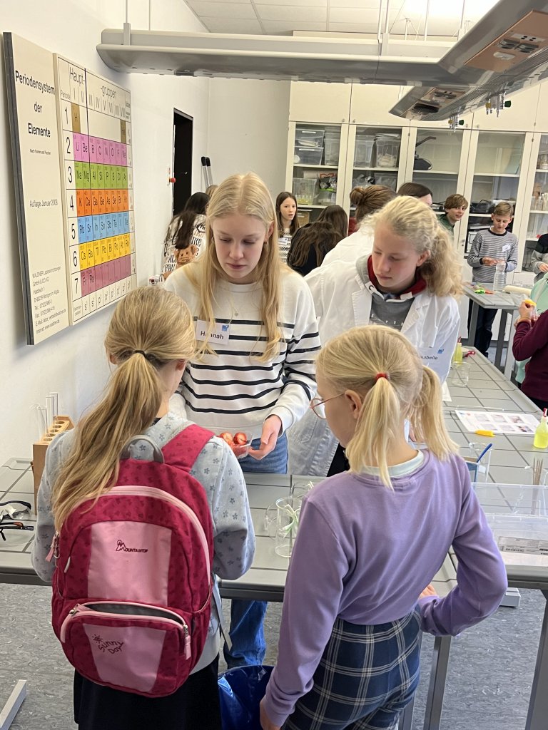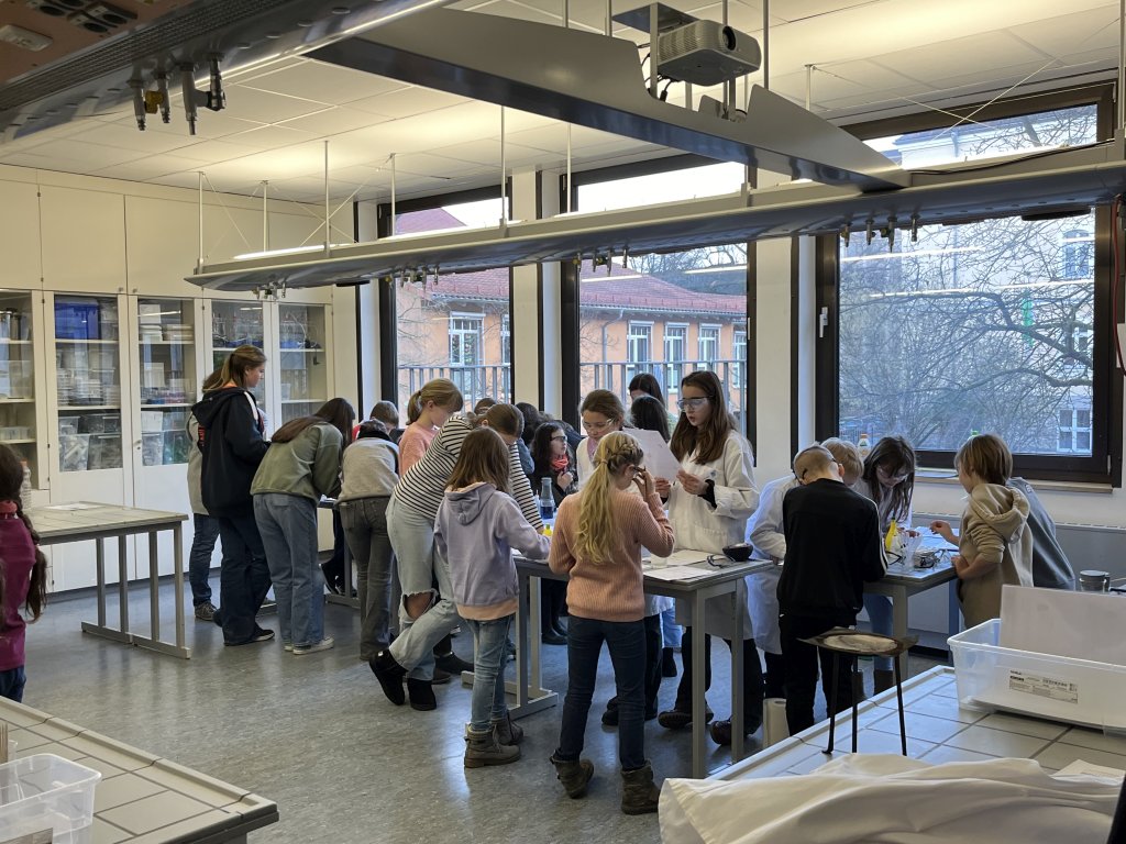 Das ist nur eine Auswahl an Zitaten der Viertklässlerinnen und Viertklässler, die unseren Aktionstag besuchten und dort in das Unterrichtsgeschehen von zwei unserer Profilfächer hineinschnuppern durften. Die Schülerinnen Und Schüler erlebten bei den ansprechenden Workshops, wie ganzheitlicher und auf individuellen Interessen basierender Unterricht am RWG umgesetzt wird. Während die Eltern in unserer Mensa von den Schülerinnen und Schülern der Q12 mit selbst gebackenem Kuchen verwöhnt wurden und dort mit einigen Lehrkräften ins Gespräch kommen konnten, wurde in den Chemiesälen experimentiert und geforscht, in der Aula Theater gespielt und in der Turnhalle geklettert und auf wilden Hindernisparcours getobt.