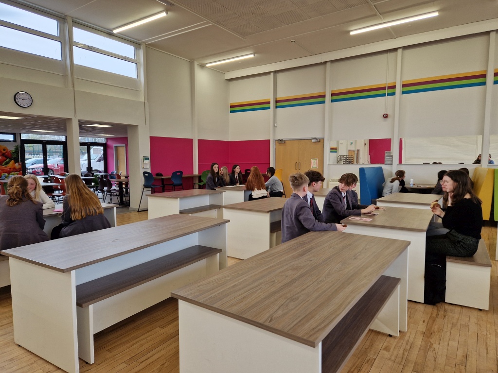 Auch am Mittwoch durften wir wieder mit unseren Austauschpartnerinnen und -partnern den Unterricht besuchen. Wir erhielten dabei die verschiedensten Einblicke in Music, English, German und Science. Ein kleines Highlight war der Deutschunterricht am Nachmittag. Hier durften wir in der Mensa der Welland Park Academy die Schülerinnen und Schüler der beiden Deutschkurse aus Year 9 kennenlernen. In einer Art Speed dating hatten wir die Möglichkeit mit möglichst vielen von ihnen in Kleingruppen zu sprechen und ihnen von unserem Schulleben in Deutschland sowie von Bayreuth zu berichten. Wir hoffen, dass wir dabei viele von ihnen motivieren konnten, nächstes Schuljahr an dem Austausch teilzunehmen.