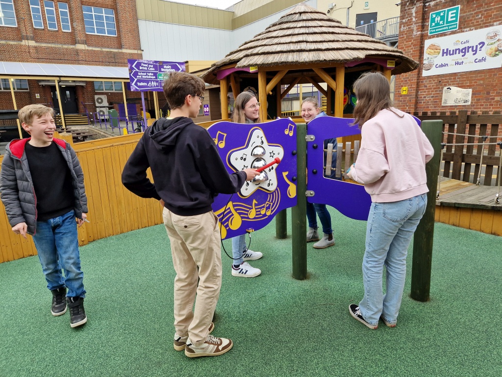 An unserem letzten Tag machten wir uns per Bus nach Birmingham auf, um die Cadbury World, eine interaktive Ausstellung zur Schokoladenherstellung und Geschichte von Cadbury, zu besuchen. Zu Beginn unserer Tour erhielten wir alle zunächst drei unterschiedliche Schokoladenriegel. Die Tour der Cadbury World bestand aus einer interaktiven Ausstellung, einem Fahrgeschäft, einer Schokoladenverkostung sowie einem 4D-Film über die Geschichte der Cadbury Schokolade. Ehe wir nach Market Harborough für unseren letzten gemeinsamen Abend in den Familien zurückfuhren, vertrieben wir uns die Zeit noch auf dem Spielgelände der Cadbury World.