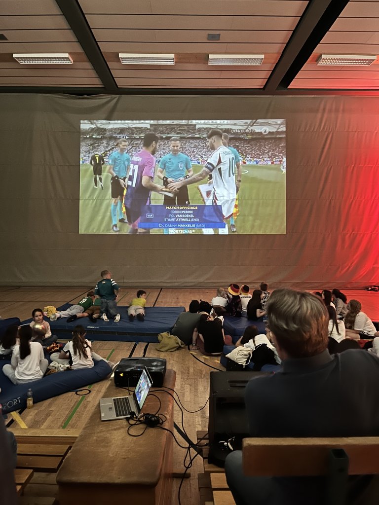 Fragen über Fragen kommen dem Fußball-Fan bei der Heim-EM in den Kopf. Antworten darauf gab es beim Fan-Fest mit Public Viewing in der Turnhalle unserer Schule im Vorrundenspiel gegen Ungarn.