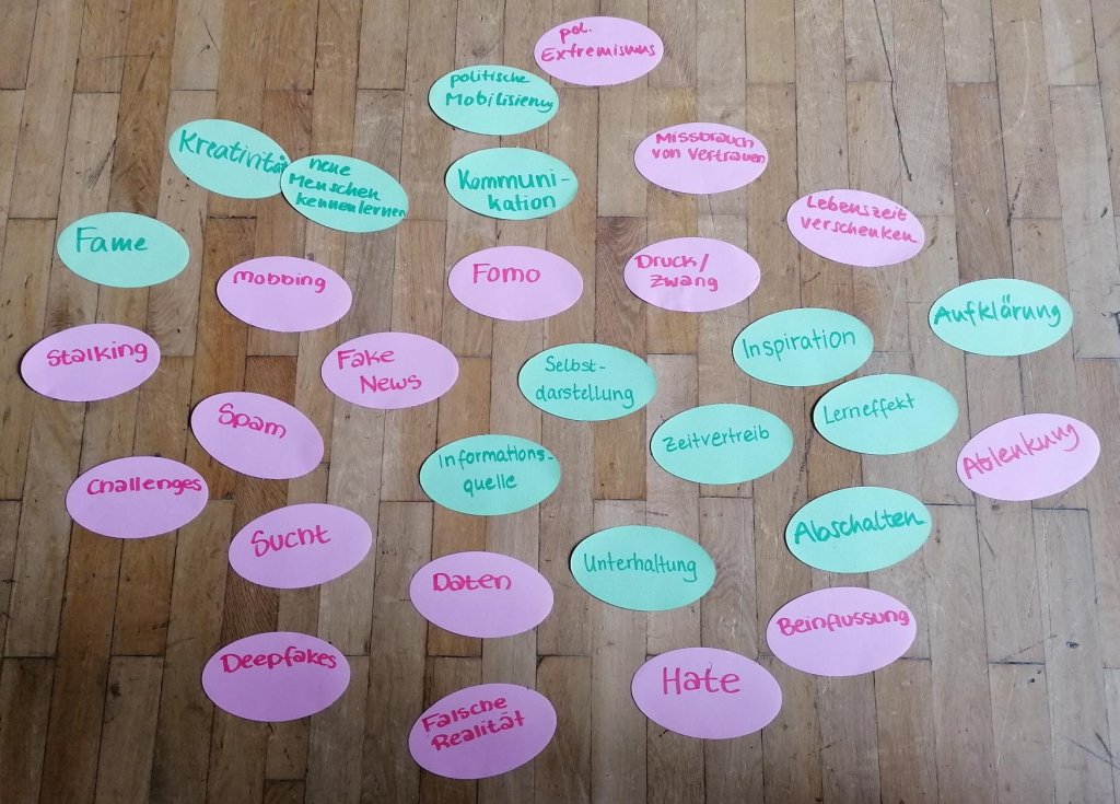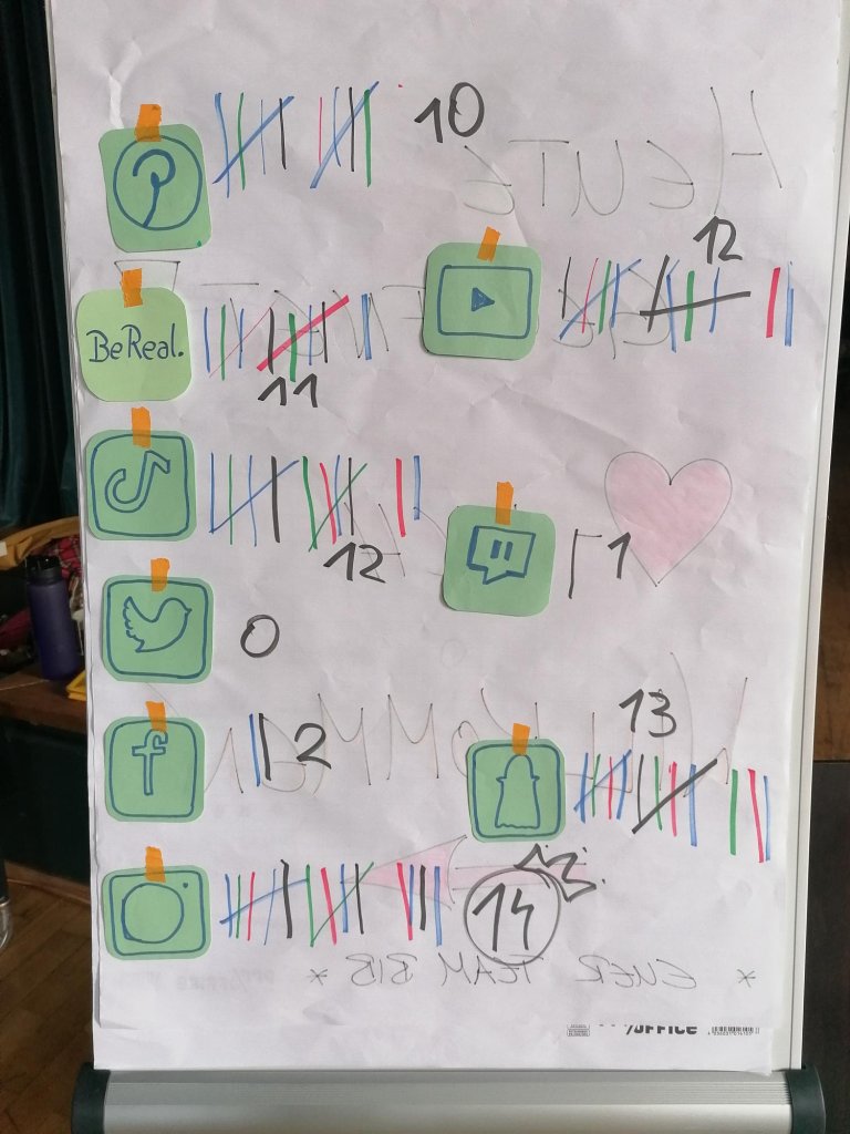 Gemeinsam fanden wir heraus, welche Plattformen von den Teilnehmern am meisten benutzt werden und welche Vor- und Nachteile Social Media beinhaltet. Durch eine Umfrage in der Gruppe wurden Vor- und Nachteile von sozialer Medien erarbeitet.