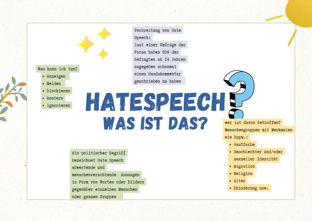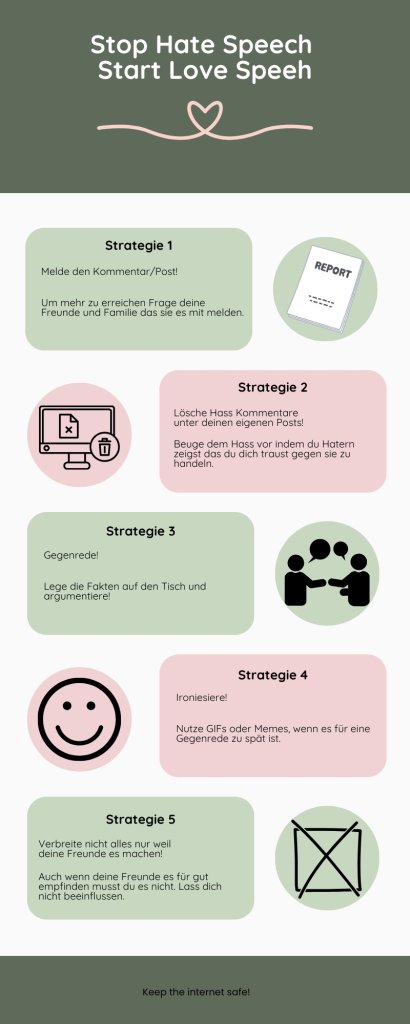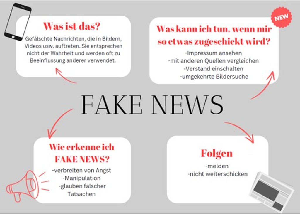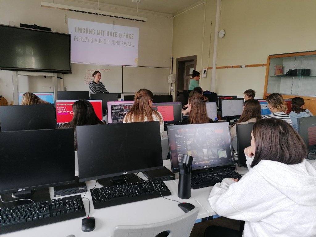 Wir beschäftigten uns mit dem Erkennen und Vermeiden von Fake News, dem Umgang mit Hate Speech und Cybermobbing, dem verantwortungsbewussten Verhalten im Netz und mit dem Erstellen einer eigenen Kampagne gegen Hate Speech und Fake News.