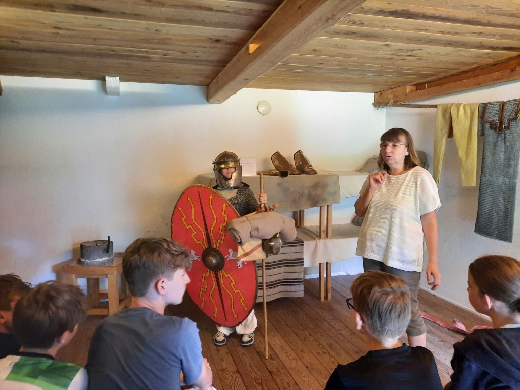 An einem weiteren Tag folgte dann die Exkursion ins Römer-und Bajuwarenmuseum nach Kipfenberg, wo für alle Teilnehmer/-innen eine fachkundige Führung durch die sehr informativ und anschaulich gestalteten Ausstellungsräume auf dem Programm stand: Hier erfuhren wir nicht nur allerlei Wissenswertes über das Alltagsleben eines am Limes stationierten römischen Soldaten, sondern durften sogar an verschiedenen Stationen auch in die Rolle eines solchen miles schlüpfen!