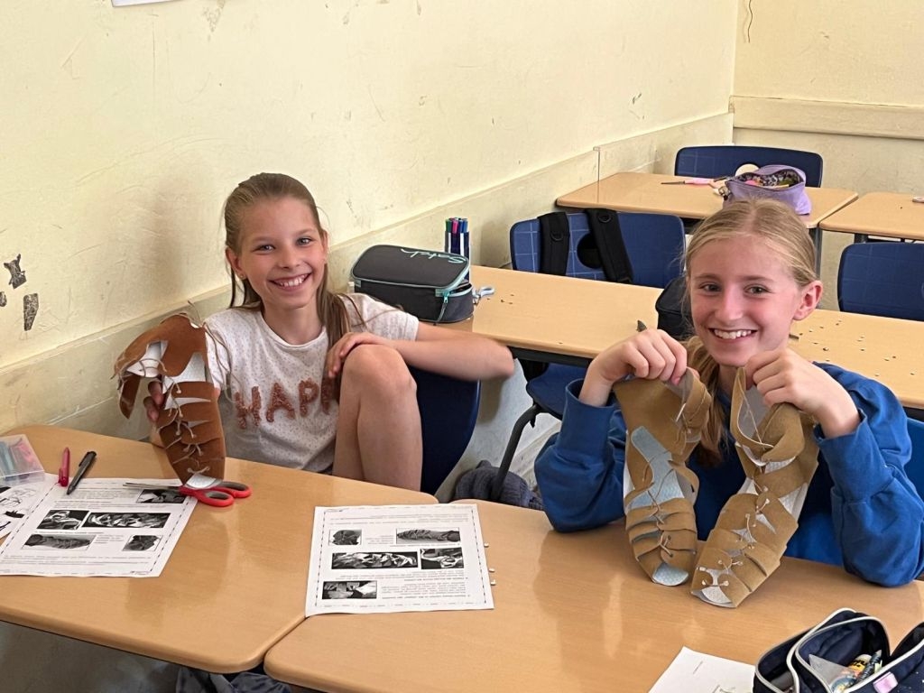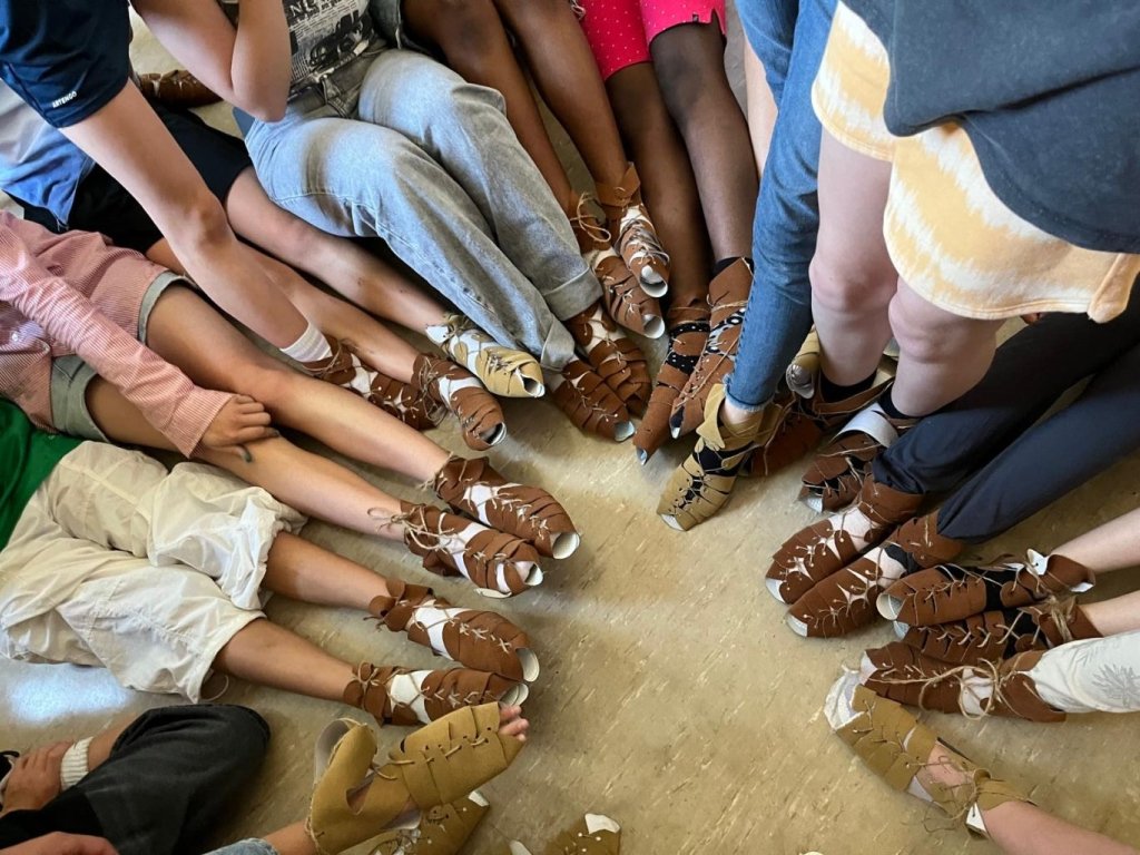 Zum anderen wurden mit Hilfe von passenden Schnittmustern, Stoffen und Kordel die traditionellen Römersandalen aus Leder angefertigt, die natürlich gleich darauf auch für eine Anprobe und ein regelrechtes ‚Schaulaufen‘ herhalten mussten 🙂