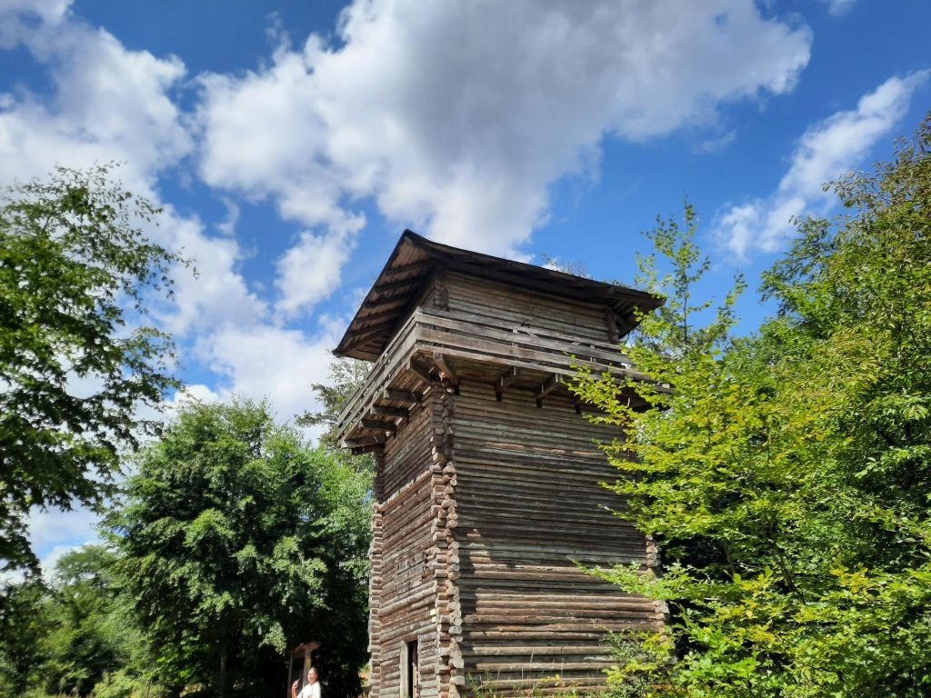 Als zweites Highlight an dem Tag erfolgte im Anschluss an die Museumsführung der kurzweilige Fußmarsch zu einem heute – normalerweise – noch begehbaren hölzernen Wachturm, der eines der Patrouillenziele am Limes im Altmühltal markierte – schade nur, dass uns diesmal ein Wespenschwarm einen Strich durch die Rechnung machte, der den Turm für sich okkupiert hatte und daher eine Turmerklimmung unmöglich machte! Aber dennoch konnte man sich sicherlich auch so ein gutes Bild vor Ort machen, bevor ein abschließender kurzer Besuch auf dem Limesspielplatz in Kipfenberg einen rundum gelungenen Ausflug abrundete.