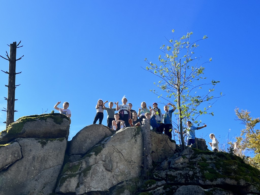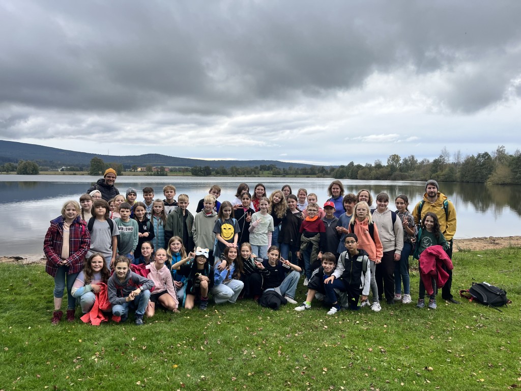 Umso schöner war es dann, als die Kinder an den Abreisetagen in die großen Busse einstiegen und ihren Eltern noch einmal zum Abschied winkten, auch wenn auf beiden Seiten ein paar Tränchen zu beobachten waren. Für die kommenden Tage standen schließlich etliche Highlights auf dem Programm: Eine Wanderung mit Klettereinlagen auf den großen Waldstein, Lagerfeuer mit Stockbrot und Marshmallows, Sportwettkämpfe, Spiel und Spaß mit den Tutorinnen, Lerneinheiten bei den Medienscouts und den Streitschlichtern, ein Wettrennen um den Weißenstädter See, eine gruselige Nachtwanderung und die Klassensprecherwahl. Da war es dann auch ganz egal, dass das Wetter von allem ein bisschen für uns parat hatte. Mal schien die Sonne, der Himmel war blau und man wäre am liebsten zur Abkühlung in den Weißenstädter See gesprungen. Mal regnete es aus Kübeln und der Nebel legte sich um die umliegenden Gipfel des Ochsenkopfes und des Schneeberges, sodass sie kaum noch zu erkennen waren. Das Betreuerteam, das aus Klassenlehrern, den Tutorinnen, den Medienscouts und den Streitschlichtern bestand, fand immer eine tolle Aktion, um das Beste aus den Wetterverhältnissen zu machen. Und das Team des Schullandheimes versorgte uns rund um die Uhr mit leckerem Essen. So wurde der Aufenthalt im Schullandheim für alle ein gewinnbringendes und unvergessliches Erlebnis.