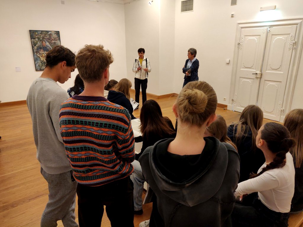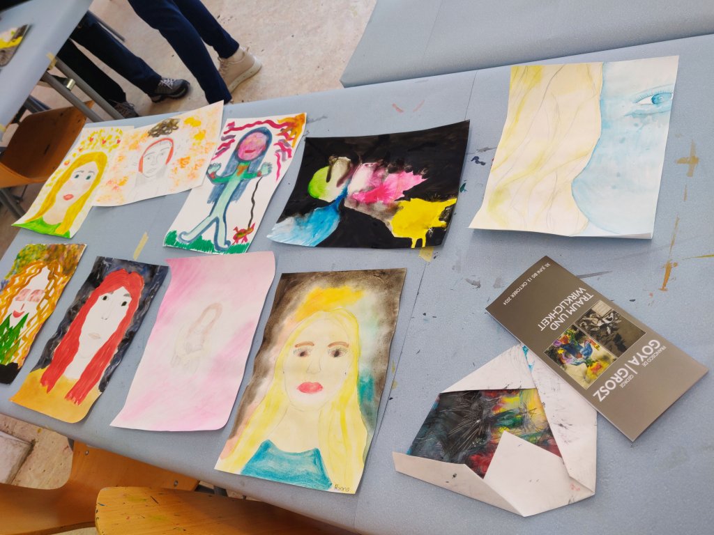 Am Freitag erwartete die Gruppe nach dem ersten Teil des Vormittagsunterrichts eine Führung zu Goya und Grosz im Kunstmuseum. Die Selbstdarstellung im eigenständigen Malen rundete den Atelierbesuch ab.