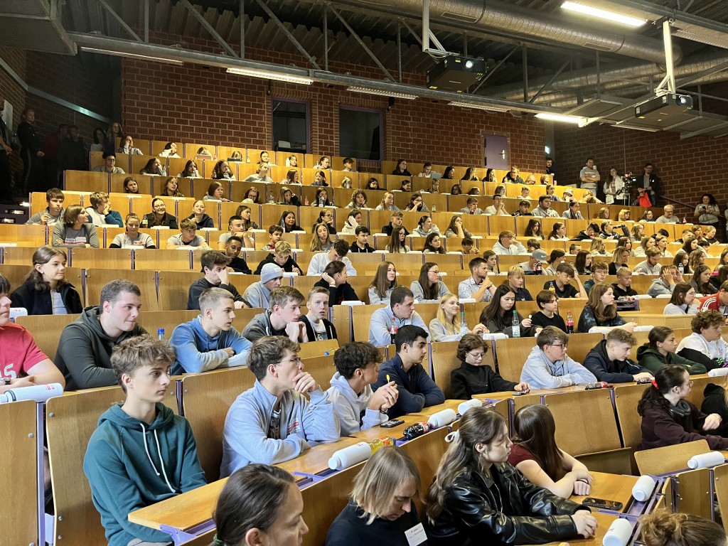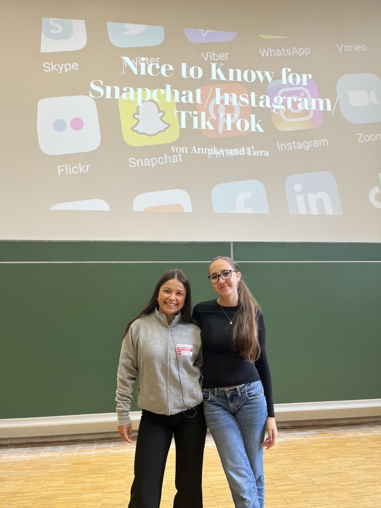 Nach einem interessanten und bewegenden Einstiegsvortrag des Psychologen und Extremismusexperten Ahmad Mansour konnten offene Fragen gestellt werden und unsere Scouts Lara und Annika diskutierten direkt mit der durch viele Talkshowauftritte berühmt gewordenen Persönlichkeit im großen Hörsaal vor dem gesamten Publikum. Anschließend besuchten die Teilnehmerinnen und Teilnehmer verschiedene Workshops zu interessanten Themen wie Künstliche Intelligenz, Hatespeech, Deepfakes und vielen anderen Themen, die sich durch die allmählich voranschreitende Digitalisierung unser Welt ergeben. Die erfahrenen Medienscouts des RWG boten einen Workshop mit dem Thema „Nice to know about Social Media“ an, der in beiden Durchgängen sehr gut besucht wurde und die Kinder zu einem verantwortungsbewussten Umgang mit der Thematik anleiten sollte.