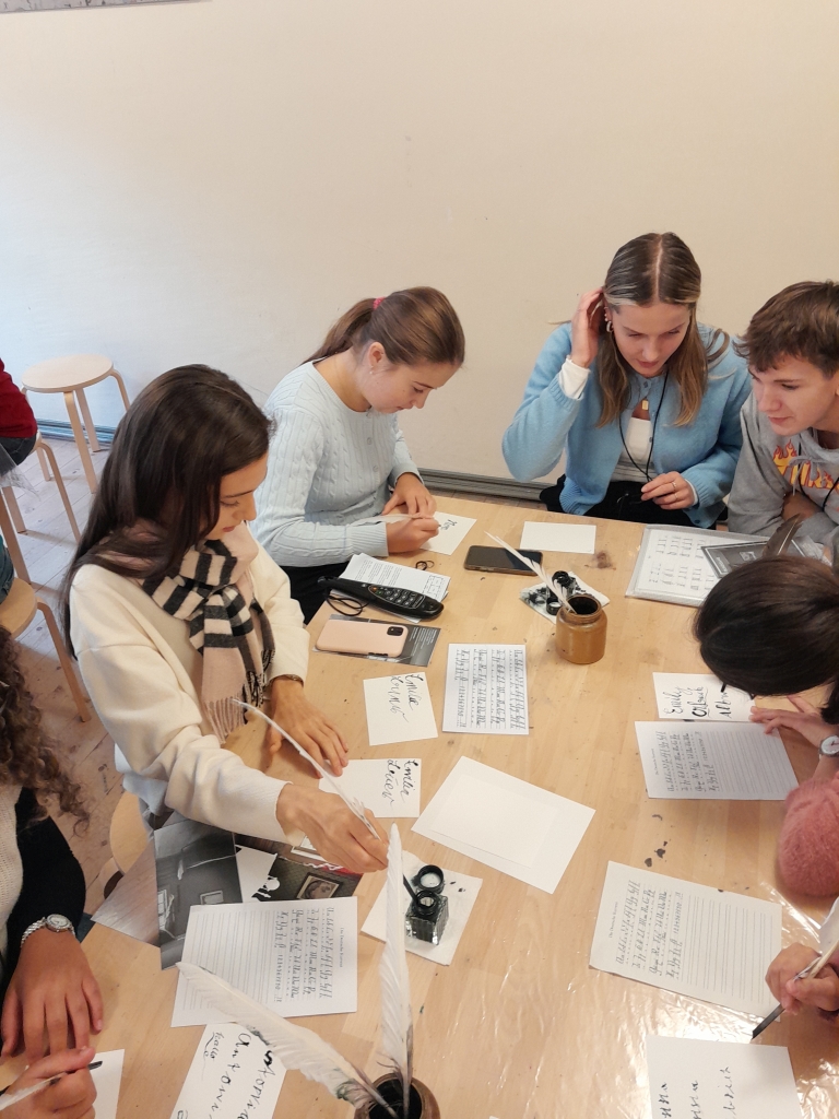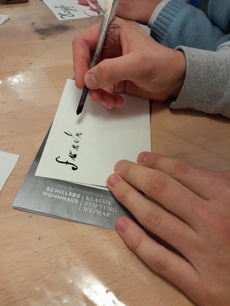 Als dritte Station besichtigten wir das ebenfalls zu einem Museum umgebaute Wohnhaus Schillers. In den Räumen, in denen teilweise noch originale Möbel und Alltagsgegenstände ausgestellt sind, konnten wir einen authentischen Eindruck vom Leben des zweiten berühmten Vertreters der Weimarer Klassik gewinnen. Einige Schülerinnen und Schüler nutzten dort auch die Gelegenheit, sich wie Schiller und Goethe mit Tinte und Feder an der Kurrentschrift zu versuchen.