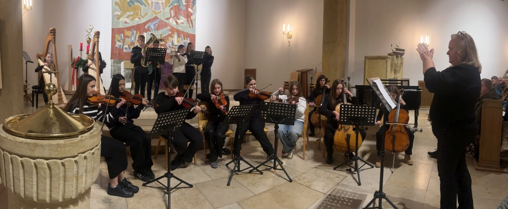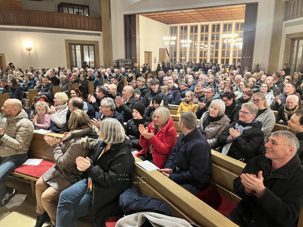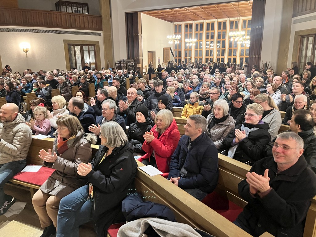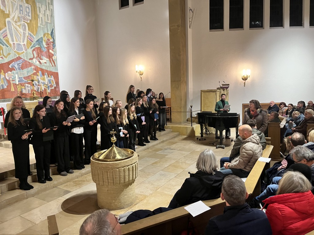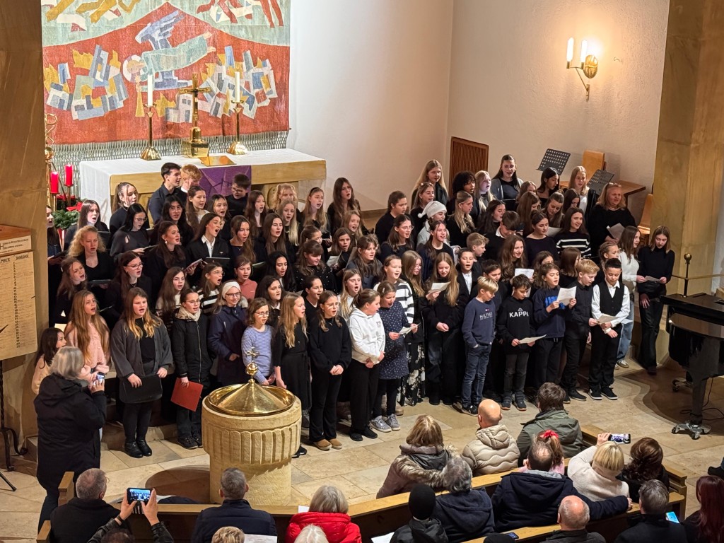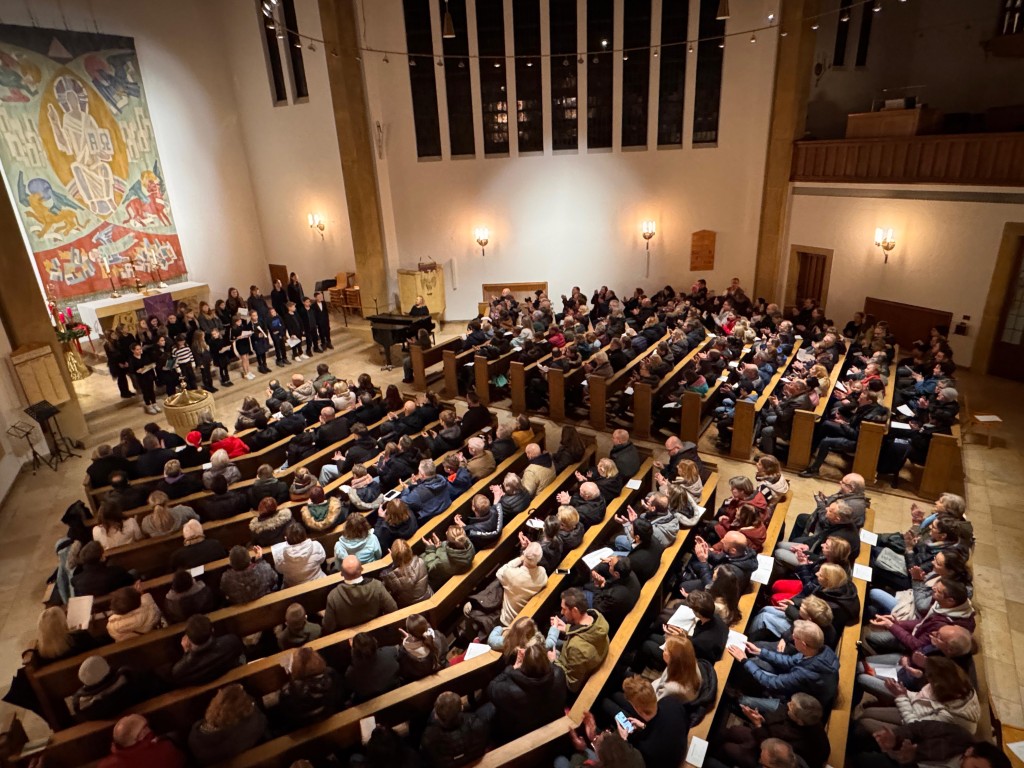 Mit dem gemeinsamen Singen des wohl bekanntesten deutschen Weihnachtsliedes endete das diesjährige Weihnachtskonzert in der voll besetzten Christuskirche. Zuvor versetzten die vielen Schülerinnen und Schüler die Zuhörer bereits mit beeindruckenden Auftritten in Weihnachtstimmung.