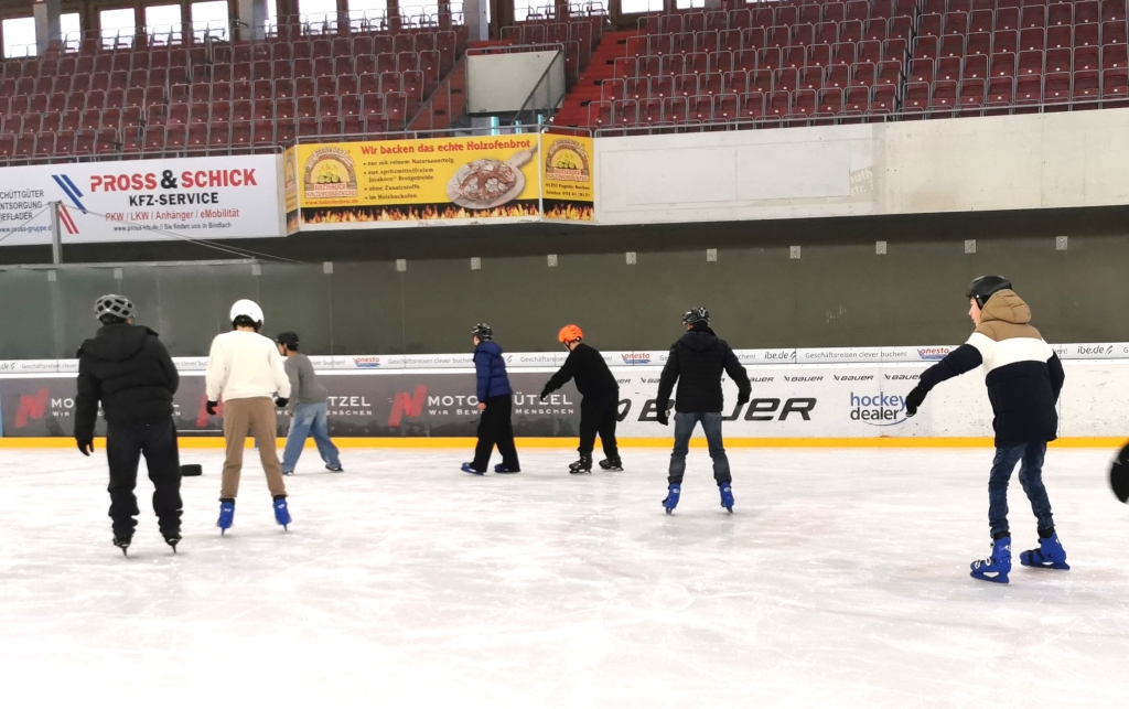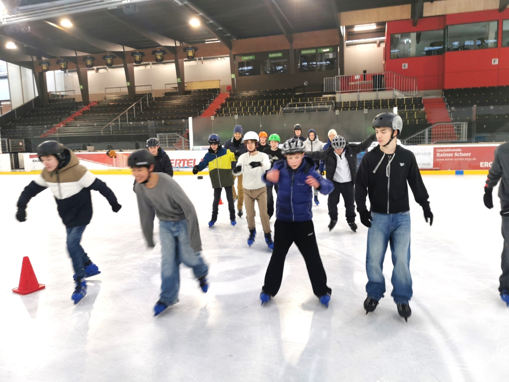 Winterzeit ist Eislaufzeit – so auch für die Jungen der 9. Klassen unserer Schule. Statt zum Schwimmen zu gehen, verlegten wir die Sportstunde in die benachbarte Eishalle und konnten auf Kufen unser Können unter Beweis stellen. Ob Beschleunigen, Bremsen, Kurvenfahren mit Übersetzen oder Slalomfahren – die zu bewältigenden Hindernisse und Routen waren sehr vielseitig und stellten einige Schüler vor große Herausforderungen.