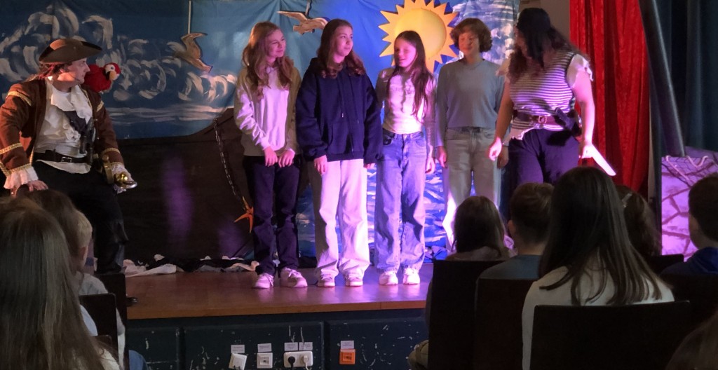 Das Musical hieß „Captain Jack“ und war sehr lustig und einige Schüler durften sogar mit auf die Bühne und mitspielen. Das beste aber war, dass die Schülerinnen und Schüler 90 Minuten live Englisch vorgespielt bekommen haben und ganz viel gelacht haben! 😊