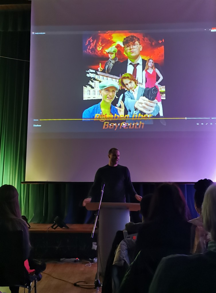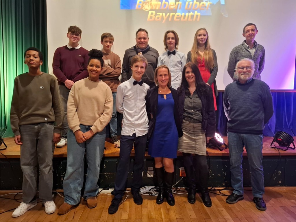 Über die letzten drei Jahren haben Felix und Tom Junod, mit Unterstützung vieler weiterer Schülerinnen und Schüler unserer Schule und mit Hilfe vieler Eltern, ein beeindruckendes Filmprojekt auf die Beine gestellt. Der Film „Bomben über Bayreuth“ wurde nun vor den Augen der Schulfamilie uraufgeführt.