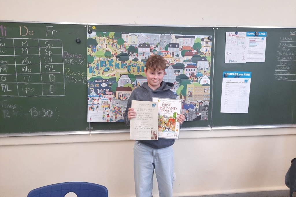 Neben einer Urkunde für alle Prämierten gab es – natürlich passend zu der Aktion – einen Buchpreis zum Thema Alltagvokabeln in lateinischer Sprache.