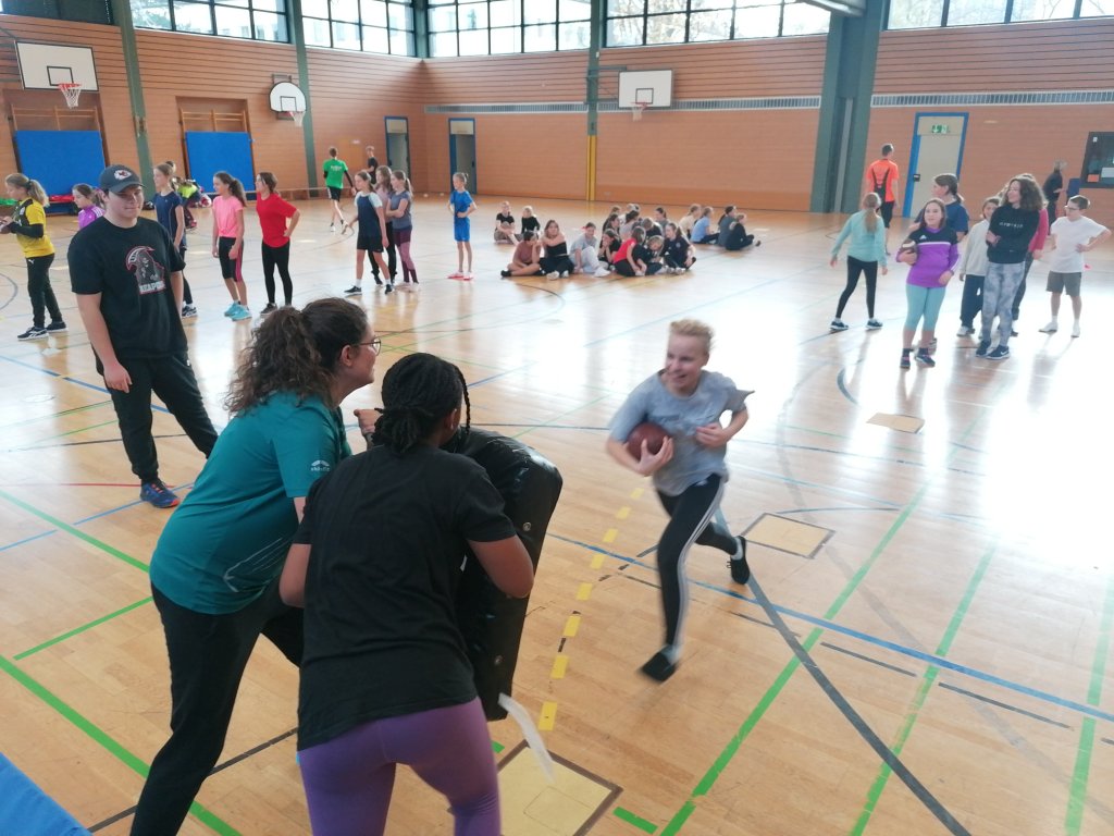 In der Woche vom 6. November wurden zahlreiche Klassen des RWGs mit diesem Kommando konfrontiert, und zwar von echten Footballspielern, den Dragons, Mitgliedern des Bayreuther Footballvereins, und damit dazu animiert, den Football zu schwingen.