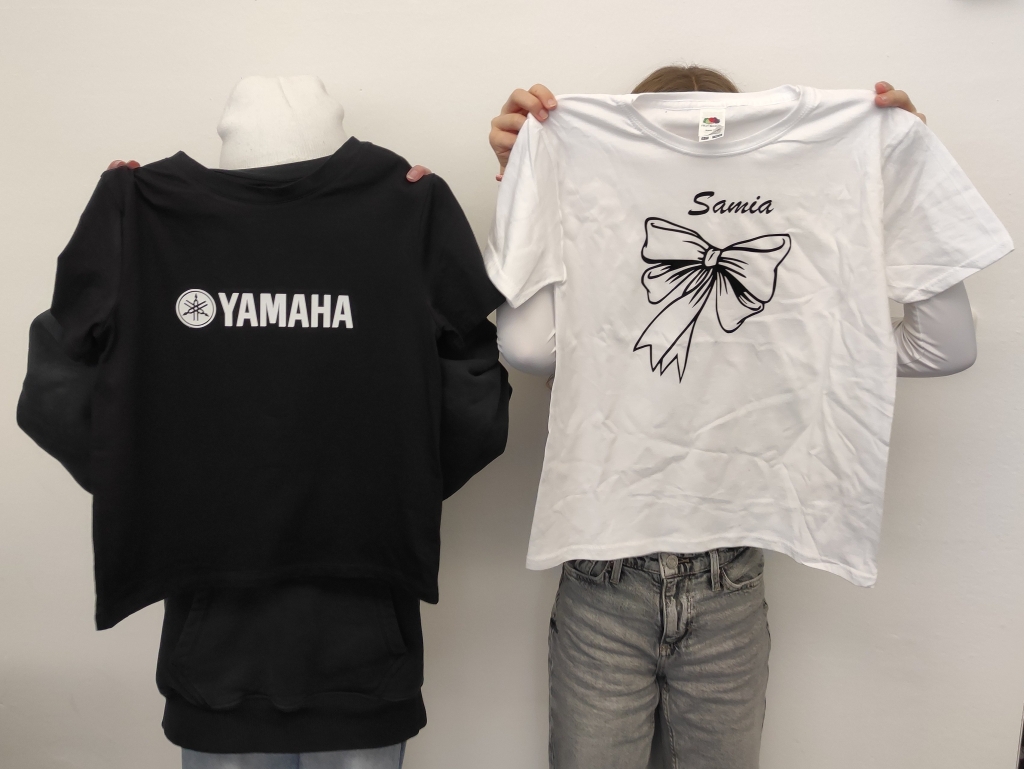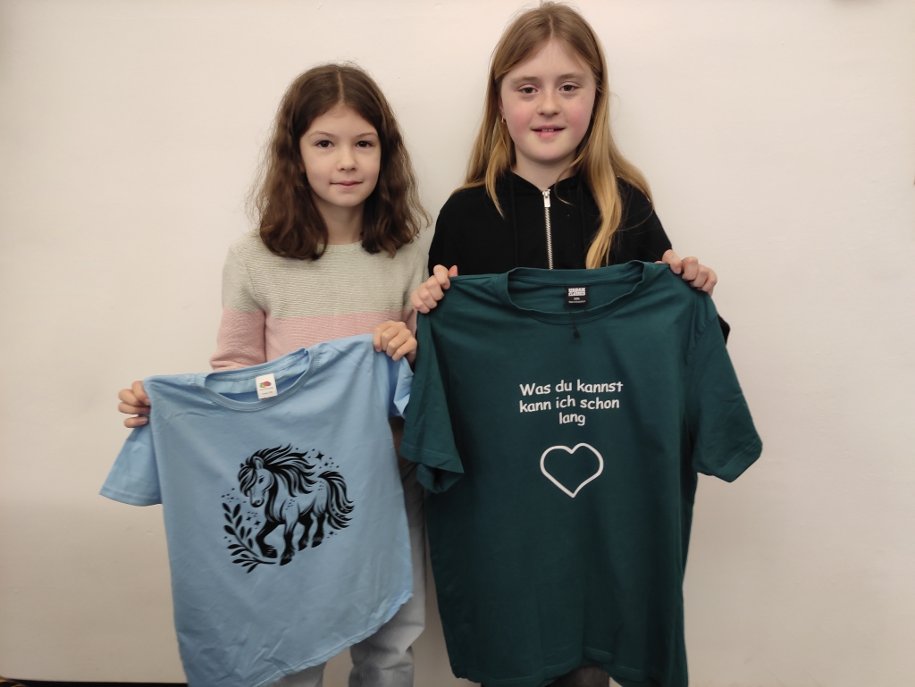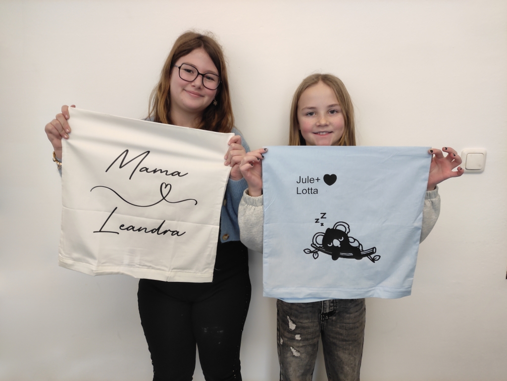 Die Schülerinnen und Schüler des Profilfachs „Digital kreatives Arbeiten“ hatten die Möglichkeit, ihre Kreativität auf eine besondere Weise auszuleben. Mit Hilfe von Thermotransferfolien und einem Folienplotter konnten sie ihre eigenen Designs für T-Shirts oder Kissen erstellen und direkt umsetzen. Die Fünftklässler haben mit großer Freude an diesem Projekt gearbeitet und waren begeistert vom professionellen Aussehen ihrer selbstgestalteten Textilien.