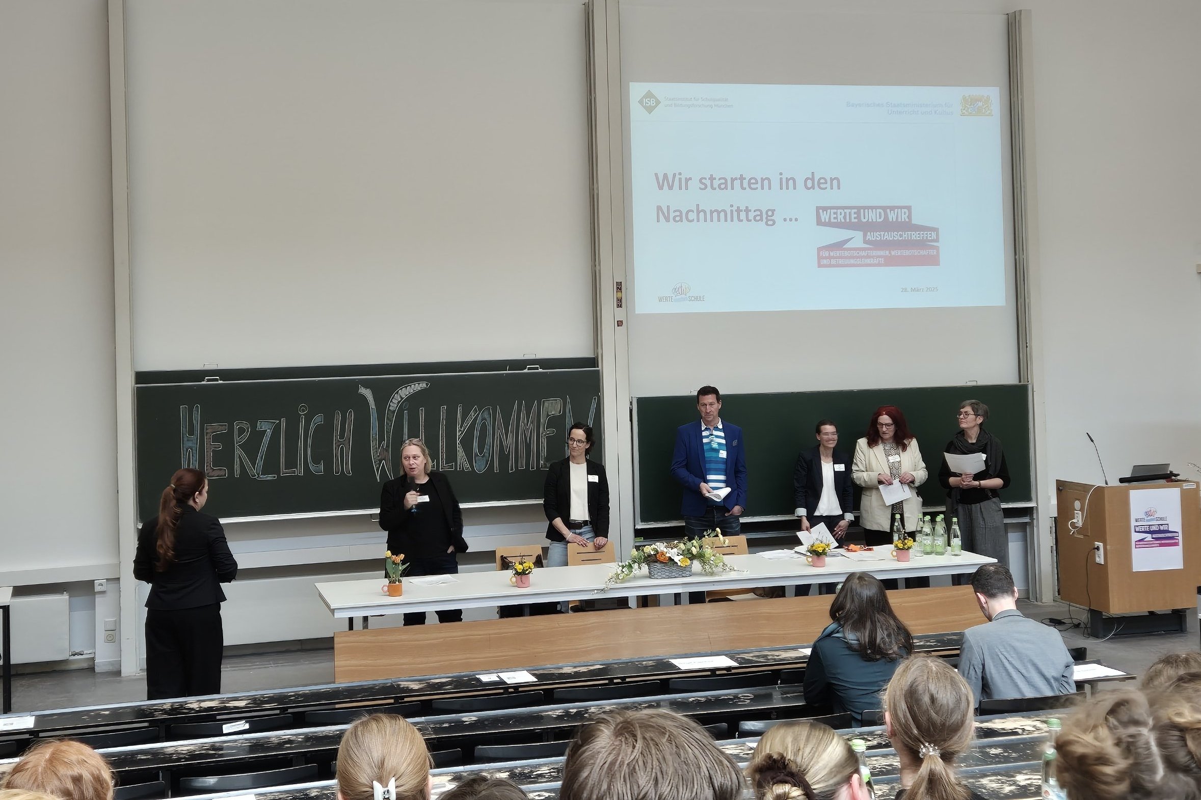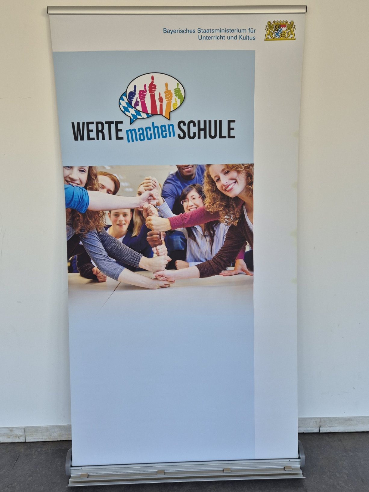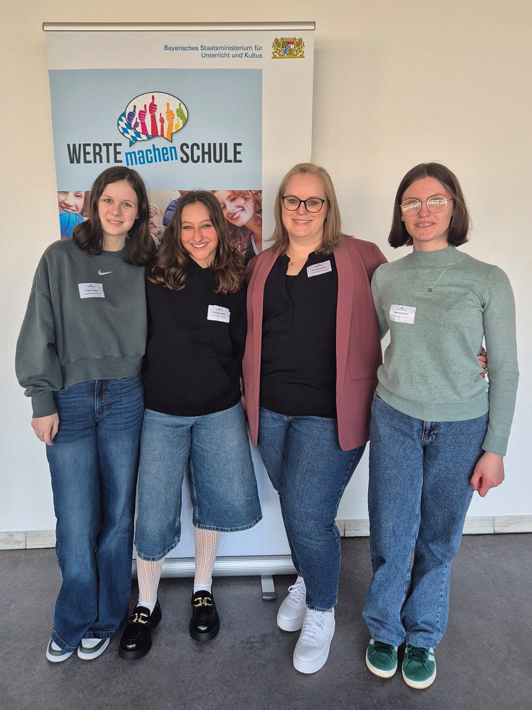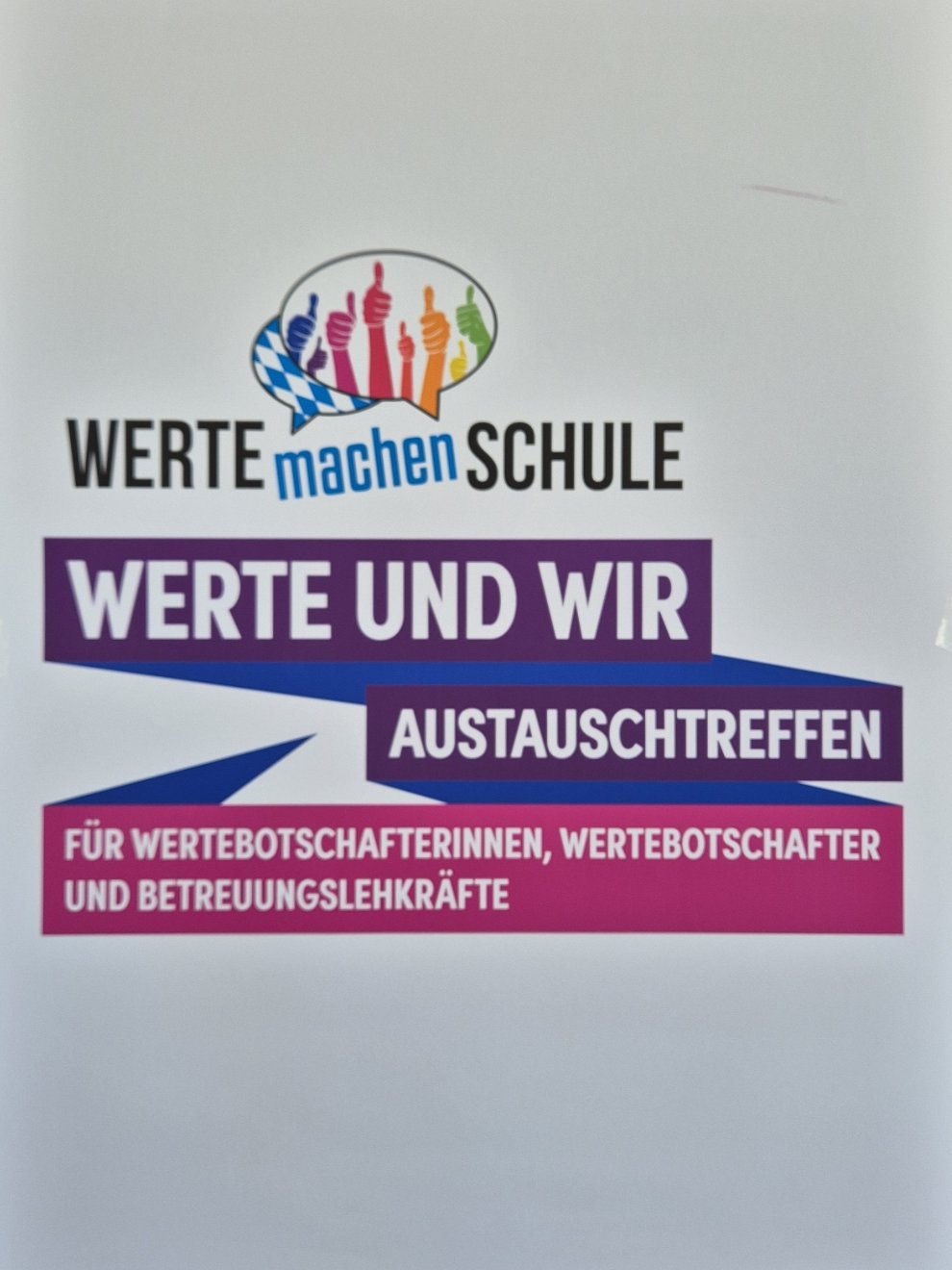 Als betreuende Lehrkraft durfte ich, Frau Jurenka, gemeinsam mit drei engagierten Schülerinnen der 9. Klassen am Austauschtreffen „Werte und Wir“ teilnehmen. Die Veranstaltung brachte Wertebotschafterinnen und -botschafter sowie Betreuungslehrkräfte aus ganz Bayern zusammen und bot wertvollen Input für unsere künftige Arbeit an der Schule.