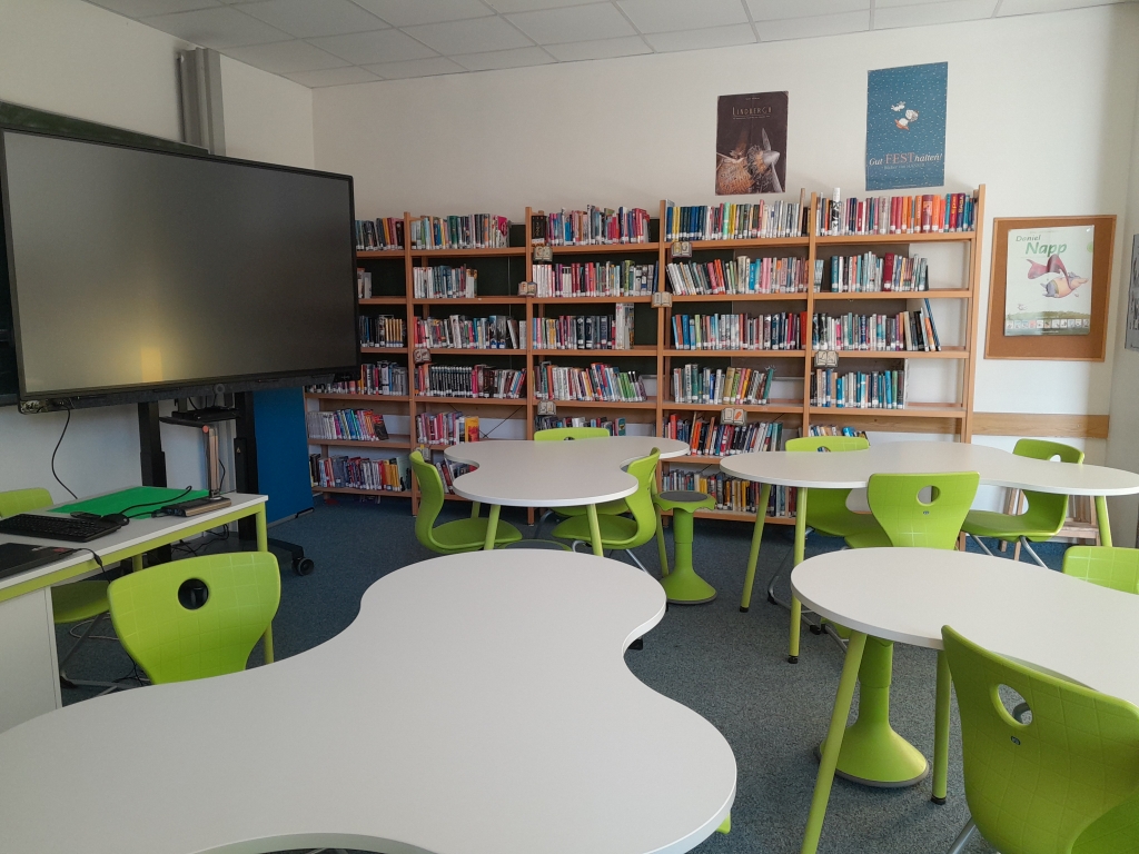 Neben der Oberen Pausenhalle zentral gelegen befindet sich das Lesende Klassenzimmer. Für die Schülerinnen und Schüler der Unterstufe gibt es hier interessante Sachbücher und Jugendromane mit spannenden, unterhaltsamen, verblüffenden, fantastischen, gefühlvollen oder nachdenklich machenden Geschichten. Bequeme Sitzsäcke laden hier zum Schmökern ein. Durch die Ausstattung mit einem mobilen Panel eignet sich dieser Raum auch für den abwechslungsreichen und modernen Fachunterricht. So werden hier beispielsweise die Stunden zur Leseförderung in den fünften Klassen abgehalten.