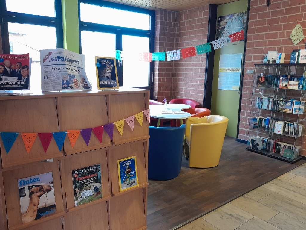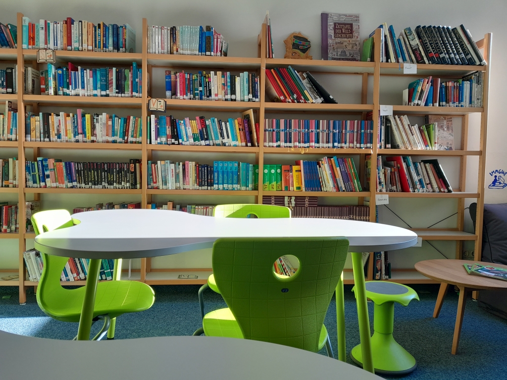 Die Bibliotheksräume an unserer Schule sind ganz besondere Orte. Mit dem Lesenden Klassenzimmer und Ritchie’s Reading Room haben wir zwei Schatzkammern gefüllt mit aktueller Kinder- und Jugendliteratur, mit Fachzeitschriften und -büchern, mit CDs, DVDs, und Spielen. Diese können in den großen Pausen ausgeliehen werden. Das motivierte und kompetente Team BIB steht dabei allen Interessierten mit Rat und Tat zur Seite.