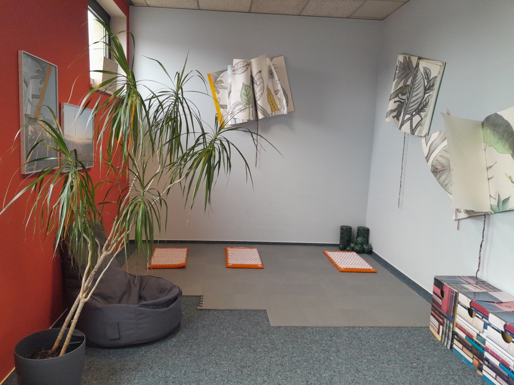 Vor allem von den Schülerinnen und Schülern der Mittel- und Oberstufe wird der ruhig gelegene Ritchie’s Reading Room mit seinen gemütlichen Nischen als Arbeits- und Erholungsraum geschätzt. Nach Fachgebieten sortiert findet sich hier aktuelle und klassische Literatur aus vielen verschiedenen Genres sowie Sachbücher zu allen erdenklichen Themenfeldern. Die Bücherei ist deshalb eine wichtige Anlaufstelle für das selbstständige Arbeiten, wenn Beispiel ein Vortrag vorbereitet werden soll. Da alle Schülerinnen und Schüler ab der achten Jahrgangsstufe eigene Tablets nutzen, wurden die bisher vorhandenen Bildschirmarbeitsplätze aufgelöst. Dabei entstand ein neuer „Freiraum“. Die dort ausgelegten Akkupressurmatten, Faszienrollen und Papphocker bieten die Möglichkeit, sich aktiv zu entspannen.