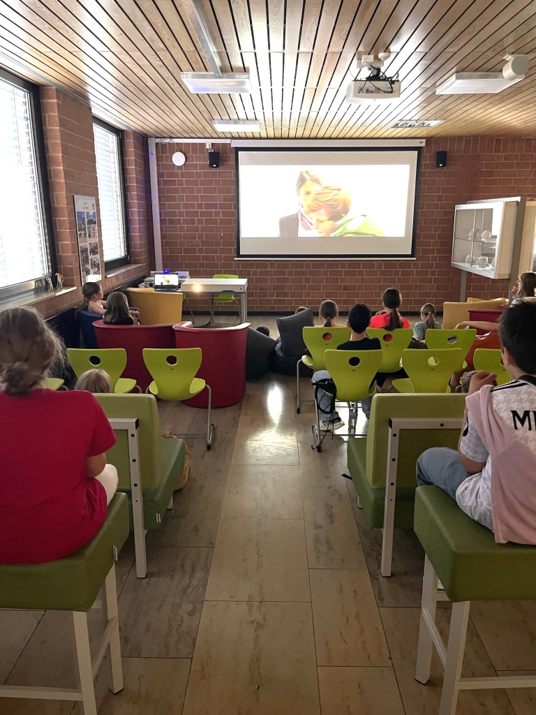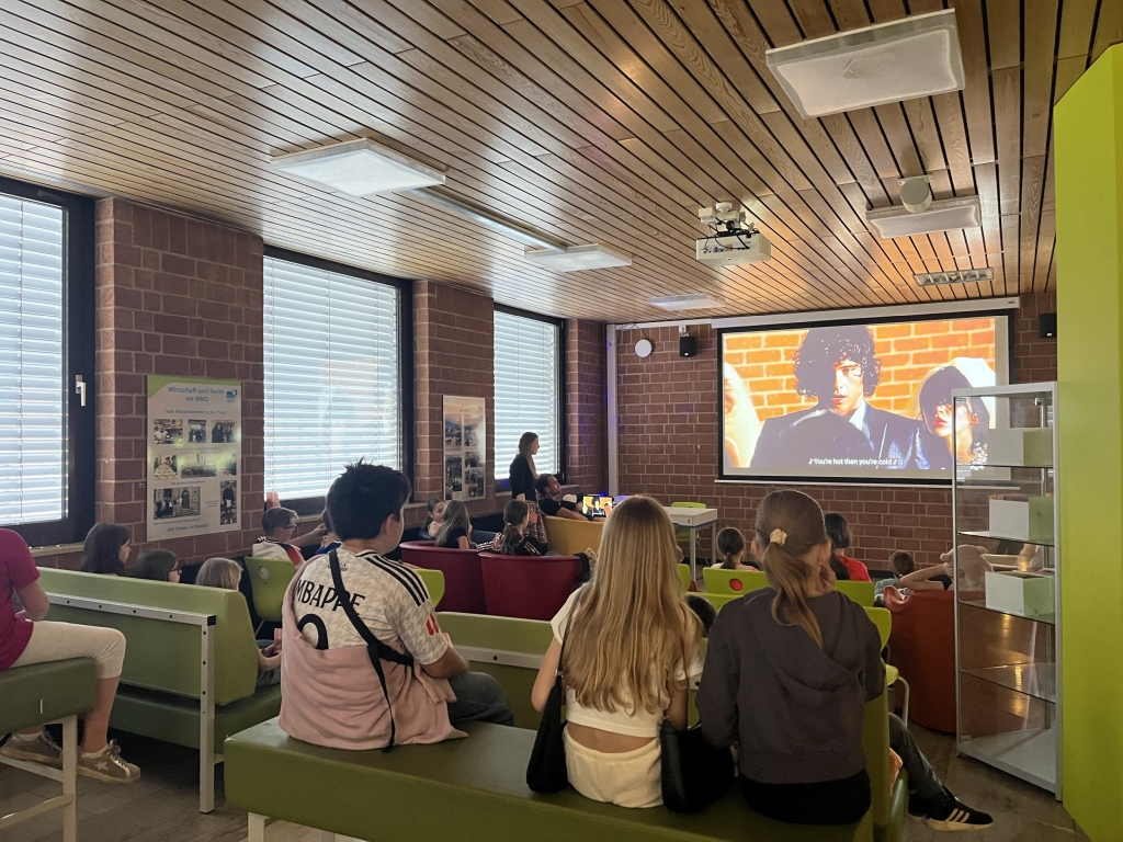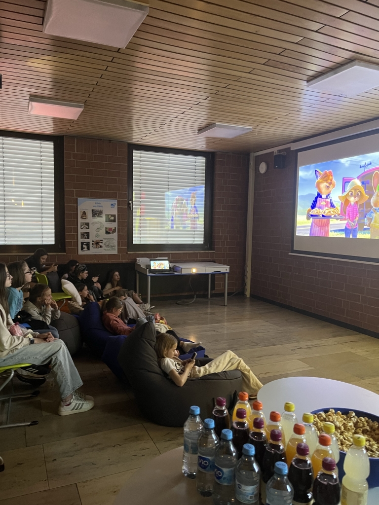 Wenn du Q12 zum Kino lädt, ist die Unterstufe gern dabei. In zwei Kinosälen in der unteren und oberen Pausenhalle konnten es sich die begeisterten Cineasten auf Knautschsäcken und Sofas gemütlich machen und die Filme genießen. Mit der Auswahl aus „Burg Schreckenstein“ und „Zoomania“ war für alle etwas dabei. Für einen rundum gelungenen Kinoabend durften frisches Popcorn und Tortilla Chips natürlich nicht fehlen.
