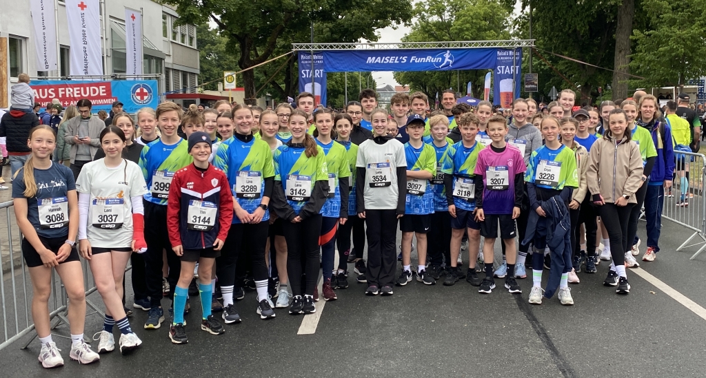 Am vergangenen Sonntag starteten 53 Schülerinnen und Schüler mit fünf Lehrerinnen und Lehrern über die 5km-Distanz beim Maisels FunRun. Trotz schlechter Wetterverhältnisse waren alle hoch motiviert und konnten ihren Lauf ins Ziel bringen!