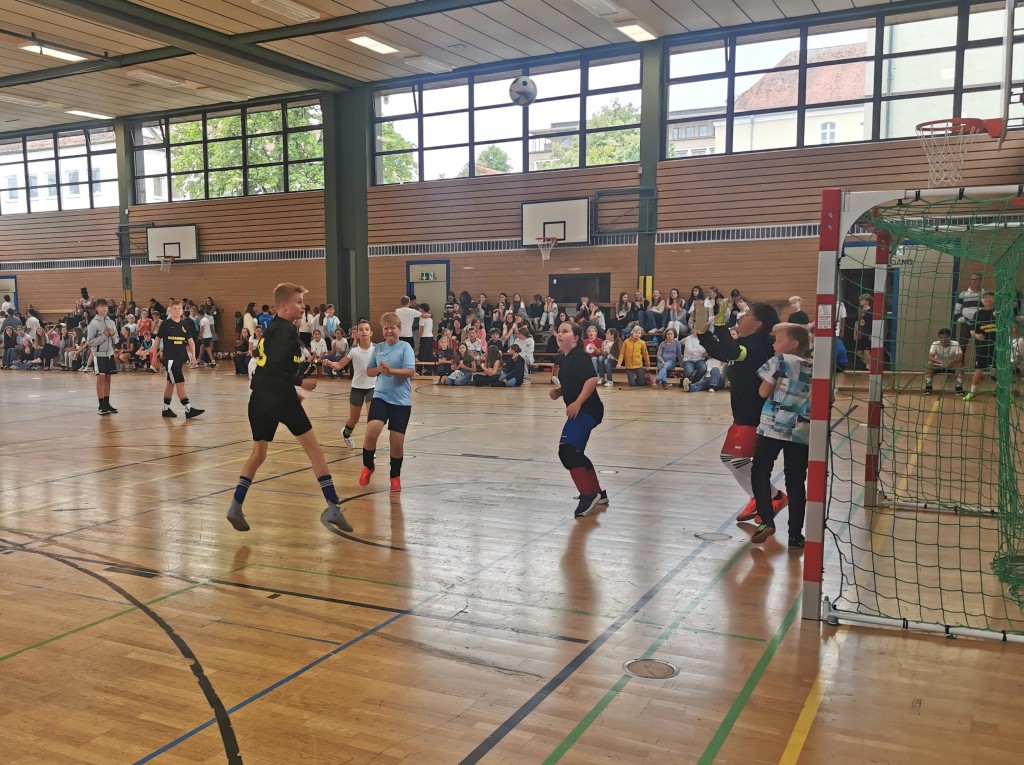 Beim Fußballturnier der 5. bis 7. Klassen am RWG ging’s ordentlich zur Sache – mit lautstarker Unterstützung von den Tribünen.