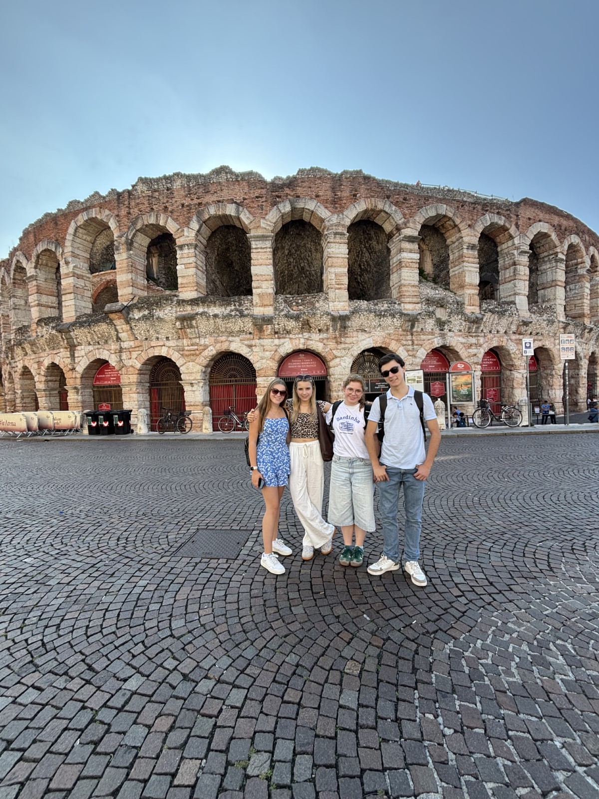 Am Wochenende folgte wahrscheinlich das größte Highlight des gesamten Stipendiums: eine Bootstour auf dem Lago di Garda. Der Blick auf das glasklare Wasser und die riesigen Berge ringsum war einfach atemberaubend. Unser Ziel war das malerische Städtchen Malcesine, wo wir das Castello Scaligeri besichtigten. Doch damit noch nicht genug: Am Sonntag stand ein weiterer unvergesslicher Ausflug an. Gemeinsam mit weiteren Stipendiaten und meinem Austauschpartner machten wir uns auf den Weg nach Verona. Dort bestaunten wir die berühmte Arena von Verona – ein Amphitheater, welches dem römischen Kolosseum ähnelt -, besuchten den berühmten Romeo und Julia Balkon und genossen die wunderschöne Aussicht vom Castelvecchio auf Verona. Natürlich durfte auch an diesem Tag ein wenig Shopping und das Genießen italienischer Spezialitäten nicht fehlen.