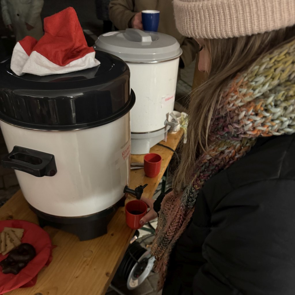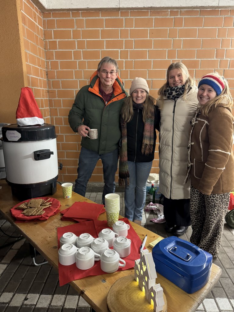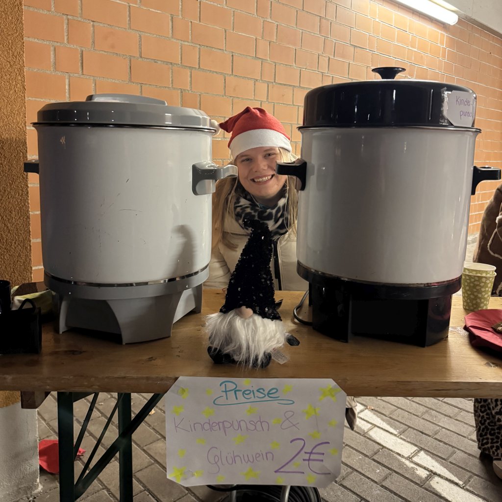 Zum ersten Mal lud am 18. Dezember der Verein der Freunde zu einem Glühwein-Umtrunk vor dem traditionellen Weihnachtskonzert ein. Bei Glühwein und Kinderpunsch in der Fahrradgarage konnten sich die Gäste des Weihnachtskonzerts somit schon vorab auf Weihnachten einstimmen. Neben Getränken gab es auch selbstgebackene Plätzchen und gehäkelte Tierchen, die von der Q12 und Schülern von Frau Körber verkauft wurden.