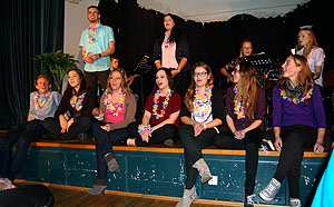 Eigentliches Highlight war logischerweise das Konzert selbst: Wie es sich für einen Musikkurs gehört, bestritten die Schülerinnen und Schüler einen Gutteil des Konzertes selbst, aber nicht nur: Sie hatten auch den Unter- und Mittelstufenchor für Beiträge gewonnen und konnten sich im Rahmen des Projektes auch in der Chorleitung erproben. Dabei konnten sie sich stets auf Rat und Hilfe ihres Kursleiters, Herrn Helmut Mehling verlassen.