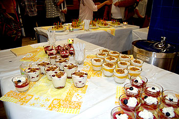 Weil ein P-Seminar etwas anderes ist als bloß Lieder singen, hatten sich die Schülerinnen und Schüler auch um alles gekümmert, was das Drumherum betrifft: Der Termin musste geplant werden, die Plakate gedruckt; es galt die Aula herzurichten, die Auswahl der Stücke vorzunehmen und die Technik einzurichten. Als besonderes Schmankerl hatten sich die Schüler überlegt, die Konzertpausen mit einem Buffet zu garnieren. Mit Hilfe von Frau Hupe und ihres 9.-Klasskurses war für allerlei Schnittchen, Häppchen und leckere Desserts gesorgt, welche die Pausen versüßten.