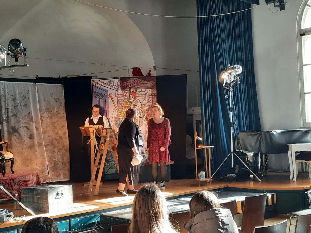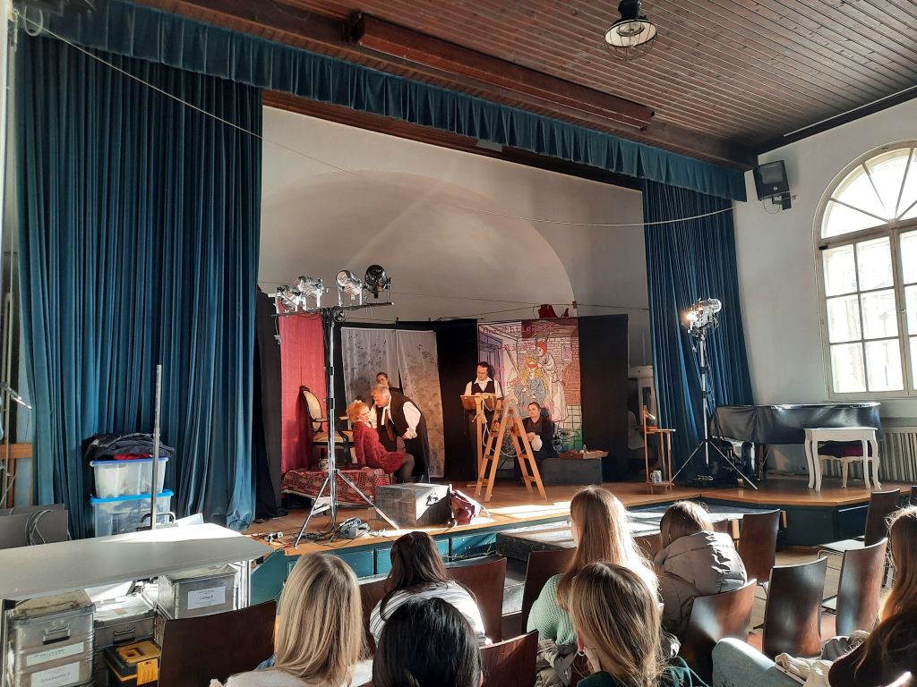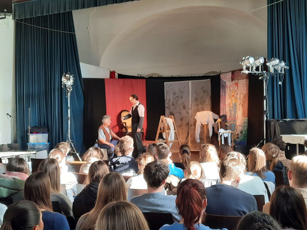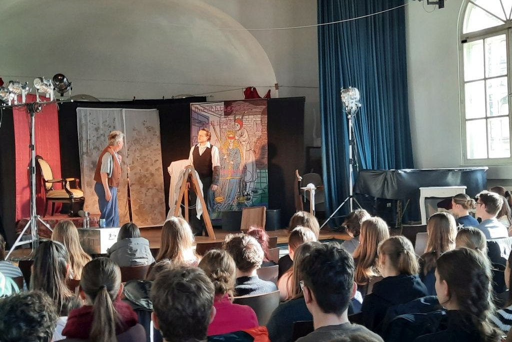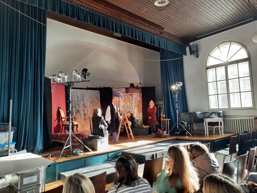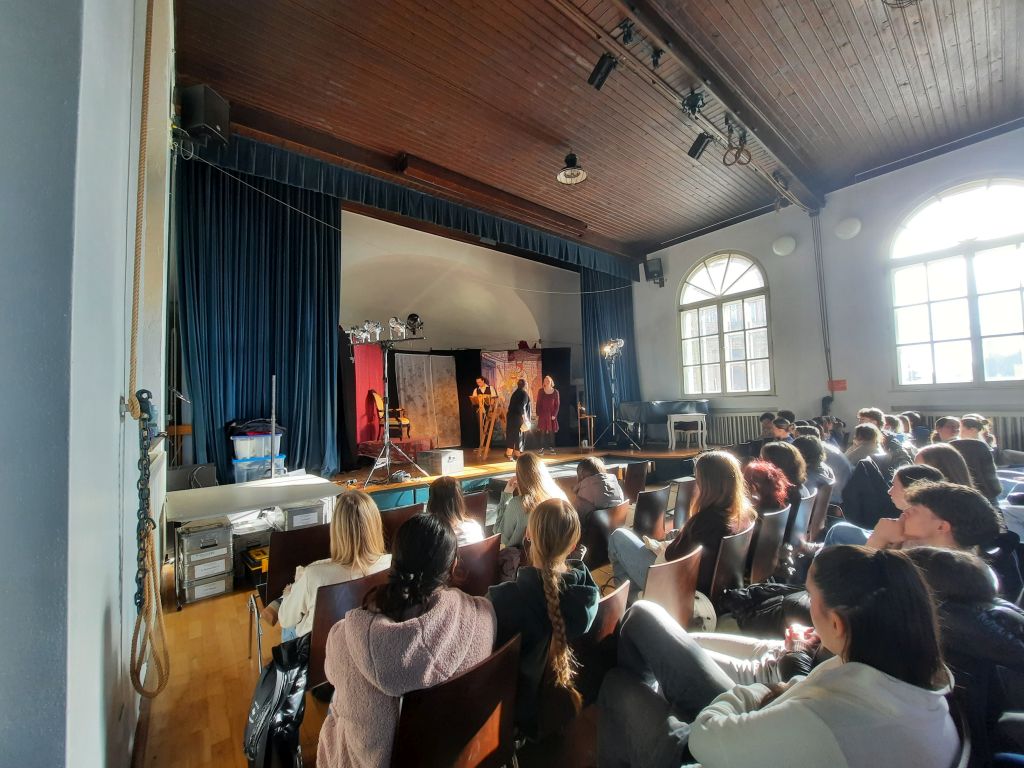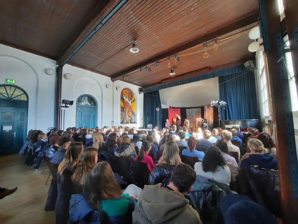 Unsere Schüler/-innen konnten dabei durch ihre gleichermaßen interessierten wie auch sehr kenntnisreichen Nachfragen unter Beweis stellen, dass sie im Laufe der Oberstufe in ihren Kursen schon einiges zum Thema Theater gelernt haben – das macht doch Lust auf mehr im Laufe der nächsten eineinhalb Jahr bis zum Abitur! Gerne ist bis dahin wieder einmal die eine oder andere kreative Aktion rund um Lektüre, Literatur & Co. geplant.