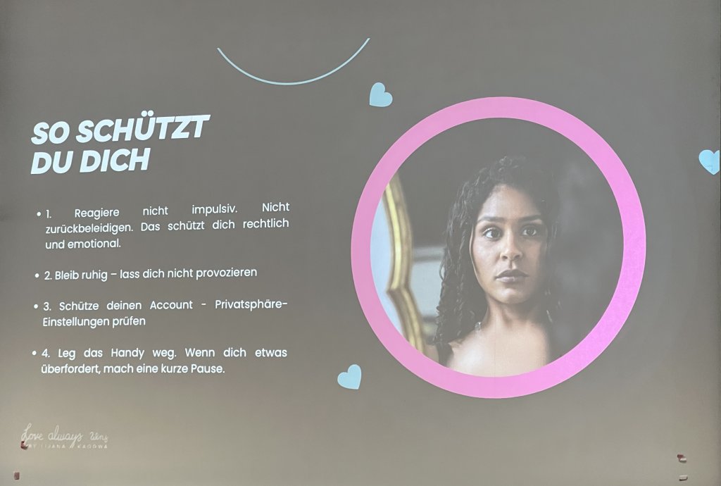 Im Mittelpunkt des Vormittags stand ein Vortrag von Lijana Kaggwa. Die Aktivistin und Finalistin der TV-Show Germany’s Next Topmodel engagiert sich seit Jahren öffentlich gegen Hass im Netz und für einen respektvollen Umgang in sozialen Medien. In ihrem Vortrag mit dem Titel „Love Always Wins“ sprach sie eindrucksvoll über digitale Zivilcourage, den Umgang mit Hate Speech sowie über Selbstwert, mentale Gesundheit und die Bedeutung von Zusammenhalt und Solidarität.