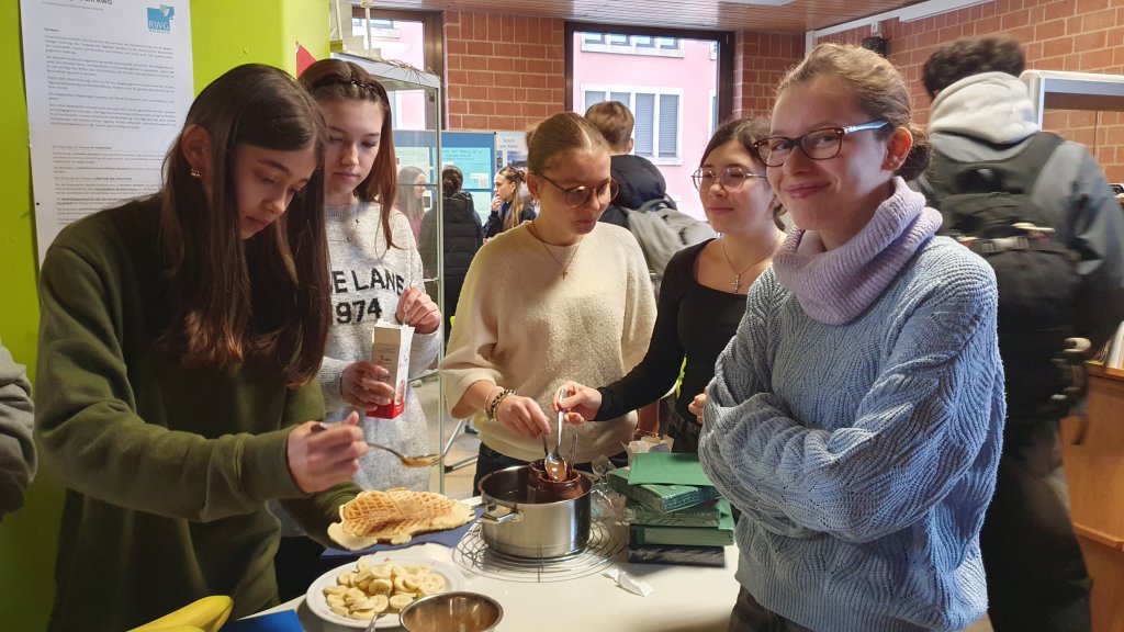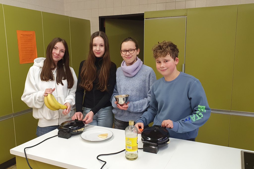 Mit großem Engagement beteiligten sich die 20 Schülerinnen und Schüler des katholischen Religionsunterrichts in der 8. Klasse an der Aktion. Besonders schön fanden es die meisten Mitwirkenden, dass sie durch ihren Einsatz aktiv helfen konnten. Trotz kleinerer Zwischenfälle reichten die vorbereiteten Waffeln für alle aus. Sie waren sehr fluffig und lecker und kamen bei Mitschülern und Lehrkräften gut an.