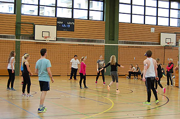 Gespielt wurde nach Jahrgangsstufen getrennt ab der 9. Klasse. Während die Neuntklässler noch im Spielmodus 4 gegen 4 gegeneinander antraten, spielten die 10. Klassen und die Oberstufe nach den offiziellen Volleyballregeln 6 gegen 6. Dafür dass Spieler und Zuschauer beste Laune hatten, sorgte u.a. die SMV, die den Turniertag mit cooler Musik optimal unterstütze.