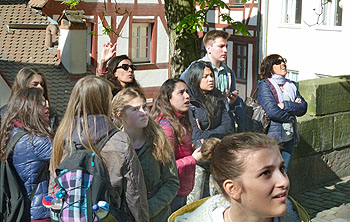 Am Mittwoch konnten die Spezzini mit ihren Partnern den Unterricht besuchen und danach in die Bayreuther Katakomben hinabsteigen. Am Donnerstag lernten sie in einem Halbtagesausflug mit Frau Klamt die fürstbischöfliche Residenzstadt Bamberg kennen. Am Freitag hörten sie in der Leuschner-Gedenkstätte einiges über das Leben des Sozialdemokraten Wilhelm Leuschner und den Widerstand gegen den Nationalsozialismus in Bayreuth. Danach konnten sie das Italienische Schlösschen im Neuen Schloss bewundern und lernten durch die interessante Führung viel über den Alltag im markgräflichen Bayreuth. Abends fand ein Abschiedsessen mit Eltern, Lehrern und Schülern im „Sonnenhof“ statt. Und dank der SMV, und vor allem dank Tizian Jahreis, konnten die Schüler noch bis 22 Uhr im RWG mit Musik feiern und in Erinnerungen an den Besuch in La Spezia schwelgen.