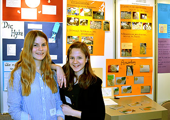 Die Schüler Lena Neuer, Klasse 8b, und Emily Greiner, Klasse 8c, haben am Wettbewerb Jugend forscht teilgenommen. Ihr Thema war die Hydra, ein Süßwasserpolyp, aus dem sie einen Eiweißextrakt gewonnen haben.