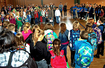 Sie verglich die Schulzeit in ihrer Begrüßungsrede mit einer Bergbesteigung: Man müsse fit sein und gut ausgerüstet. Zum Glück gebe es mit den Lehrern auch gute Bergführer und auf dem Weg nach oben auch die eine oder andere Pause.