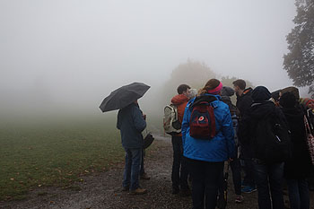 Dabei gaben sich die Teilnehmer alle Mühe, um mit Ausdauer und viel guter Laune ihre beste Seite zu zeigen. Die erste Station, die Wallfahrtskirche Vierzehnheiligen, war sogar eine gute Gelegenheit, mit Fürbitten aller Art Petrus doch noch zu erweichen, doch der zeigte wenig Mitleid mit der RWG-Belegschaft: Bei dem anderthalbstündigen Wanderweg hinauf auf den Staffelberg ließ er sie bei kaltem Nieselregen kräftig büßen.