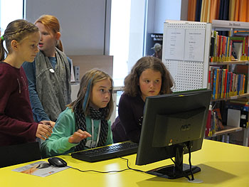 Anschließend bekamen auch die „neuen“ Leserinnen von RW 21 ihre Leseausweise und konnten diese gleich benutzen, denn es gab auch noch die Möglichkeit, an den Regalen oder am Computer „Lesefutter“ zu suchen und es mit nach Hause zu nehmen. Allen hat der kurze Ausflug in die Welt der Bücher viel Spaß gemacht und wird hoffentlich zu vielen weiteren Besuchen von RW 21 führen.