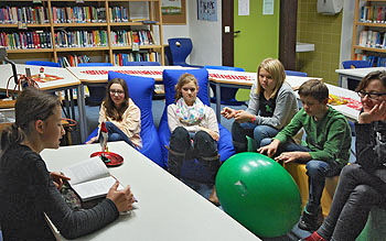 Am Vorlesetag musste man dann aber doch unter sich bleiben. Das hatte durchaus auch Vorteile, denn so konnte es im Lesenden Klassenzimmer, dem Ort der Veranstaltung, etwas zwangloser zugehen. Die Zuhörer konnten es sich auf den Sitzsäcken und Lederhockern bequem machen und es kreisten auch Lebkuchen und Weihnachtsgebäck.