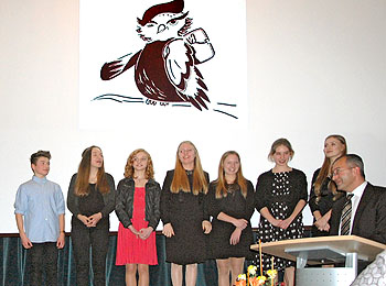 Das Catering-Team der Klasse 10a mit Jessica Brandt, Luisa Cronenberg, Luisa Ermer, Angela Huber, Angelika Huber, Alina Kuhnt, Janina Pflaum, Theresa Rauch, Sophia Sander, Nina Schischeg und Nina Zöllner