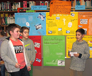 Die Besonderheit der Ausstellung lag vor allem in der kreativen Umsetzung der Lerninhalte. Pinselstrich für Pinselstrich gestaltete die Klasse voller Sorgfalt neben eigenen Bildern zu den Höhenstufen auch ein Gletschermodell und ein Höhenprofil der Zugspitze. Auch die gefährlichen Lawinen wurden in bunten Plakaten dargestellt. Von der Entstehung über die Schutzmaßnahmen bis hin zu Überlebensstrategien blieb keine Frage unbeantwortet.