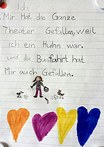 Die „Wilden Hühner“ ist eine Geschichte, die von dem Mut handelt, sich für seine Überzeugung einzusetzen und die aufzeigen soll, dass kleinliche Streitereien zurückgesteckt werden müssen, wenn man gemeinsam ein größeres Ziel erreichen will. Sie betont, wie wichtig es ist, sich an ein gegebenes Versprechen zu halten, und Solidarität zu üben, auch wenn es nicht ganz einfach ist. Die Schüler der Theatergruppe der 6. Klassen und der 7f spielten das Stück, das bei Weitem nicht nur ein Kinderstück ist, mit großer Spielfreude und Sicherheit und verstanden es durch ihr authentisches Spiel das Publikum zu fesseln und um Willi und die Hühner bangen zu lassen…