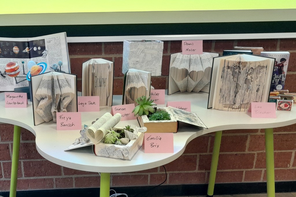 Der Wettbewerb des Team Bib hatte in diesem Jahr die Themen Nachhaltigkeit und Umweltschutz im Blick. Aufgabe war es, aus alten Büchern, die nicht mehr gelesen werden oder kaputt sind, etwas Neues entstehen zu lassen. Nachdem die eingereichten Beiträge schon vielfach im Lehrerzimmer bestaunt worden waren, bekamen sie im Rahmen der Eröffnungsveranstaltung zur Woche der…
