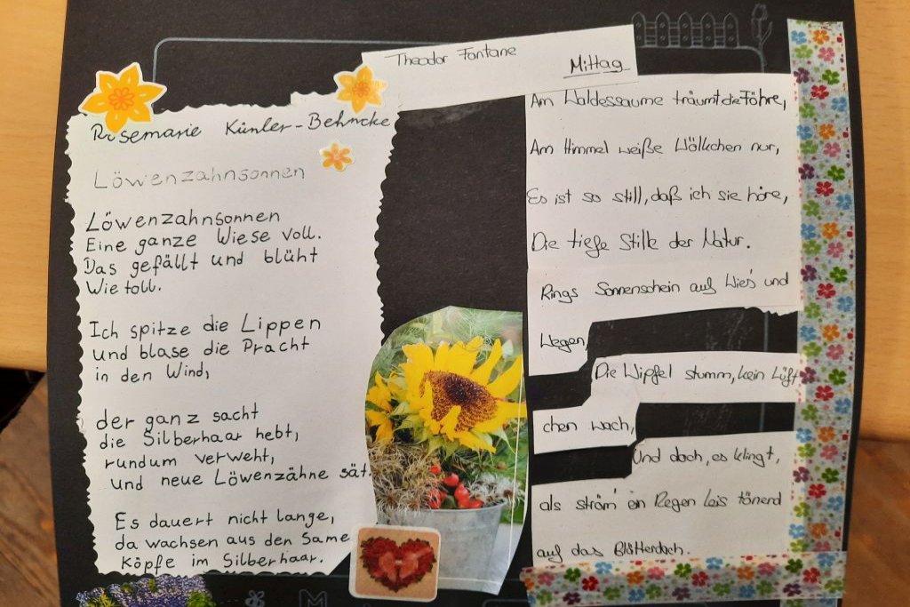 Der Beginn eines neuen Aufsatzthemas im Fach Deutsch startete durchaus kreativ im Klassenzimmer der 6a:  Die Schüler/-innen bastelten zum Thema Gedichte einen lyrischen Monatskalender, den die sie als Projekt während der Deutsch­stun­den erarbeiteten und gestalteten. Als erster Schritt war bereits eine Vorauswahl an kurzen Gedichten un­terschiedlicher Autoren getroffen worden; das Thema lautete „Jahreszeiten“. Da die…