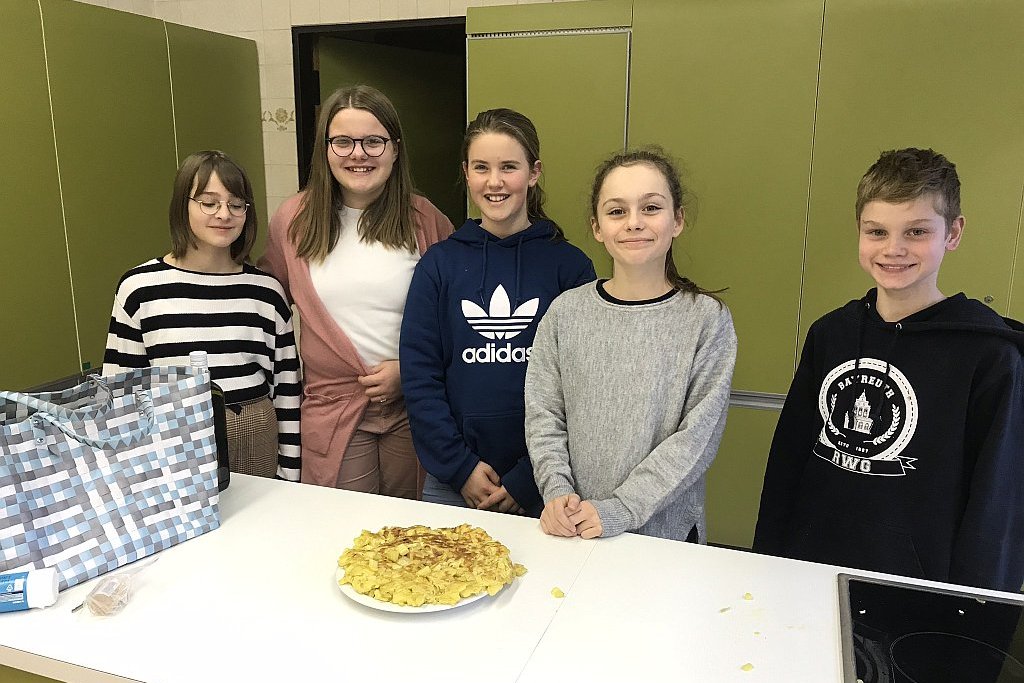 Die SprachenChecker haben sich bei ihrem letzten Treffen einer echten Herausforderung gestellt: Nach Christmas-Crackers und Halloween-Kürbissen wagten sie sich diesmal an eine echte spanische Tortilla. In der Schulküche wurden tapfer Zwiebeln gehackt, Kartoffeln geschält und Eier geschlagen. Und die Bemühungen lohnten sich: Am Ende durften wir eine leckere Tortilla probieren! Das Brutzeln und Schnippeln hat…