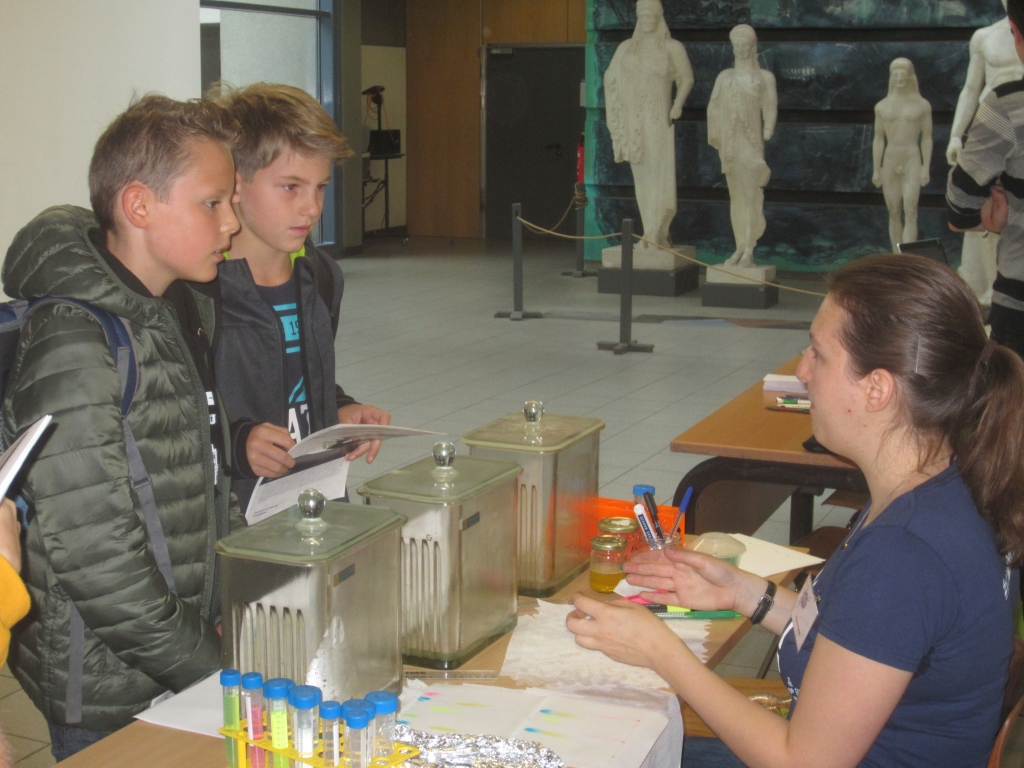 Gleich am 3. Schultag unternahmen die Schülerinnen und Schüler mit ihren Lehrern eine Exkursion zum MINT-Festival der Universität Jena. An über 50 verschiedenen Stationen aus Naturwissenschaften, Medizin, Pharmazie, Ökotrophologie, Geographie und Mathematik konnten sie experimentieren, mikroskopieren, raten, eine Chemieshow besuchen und einen Einblick in das interessante Feld der MINT-Fächer erhalten.